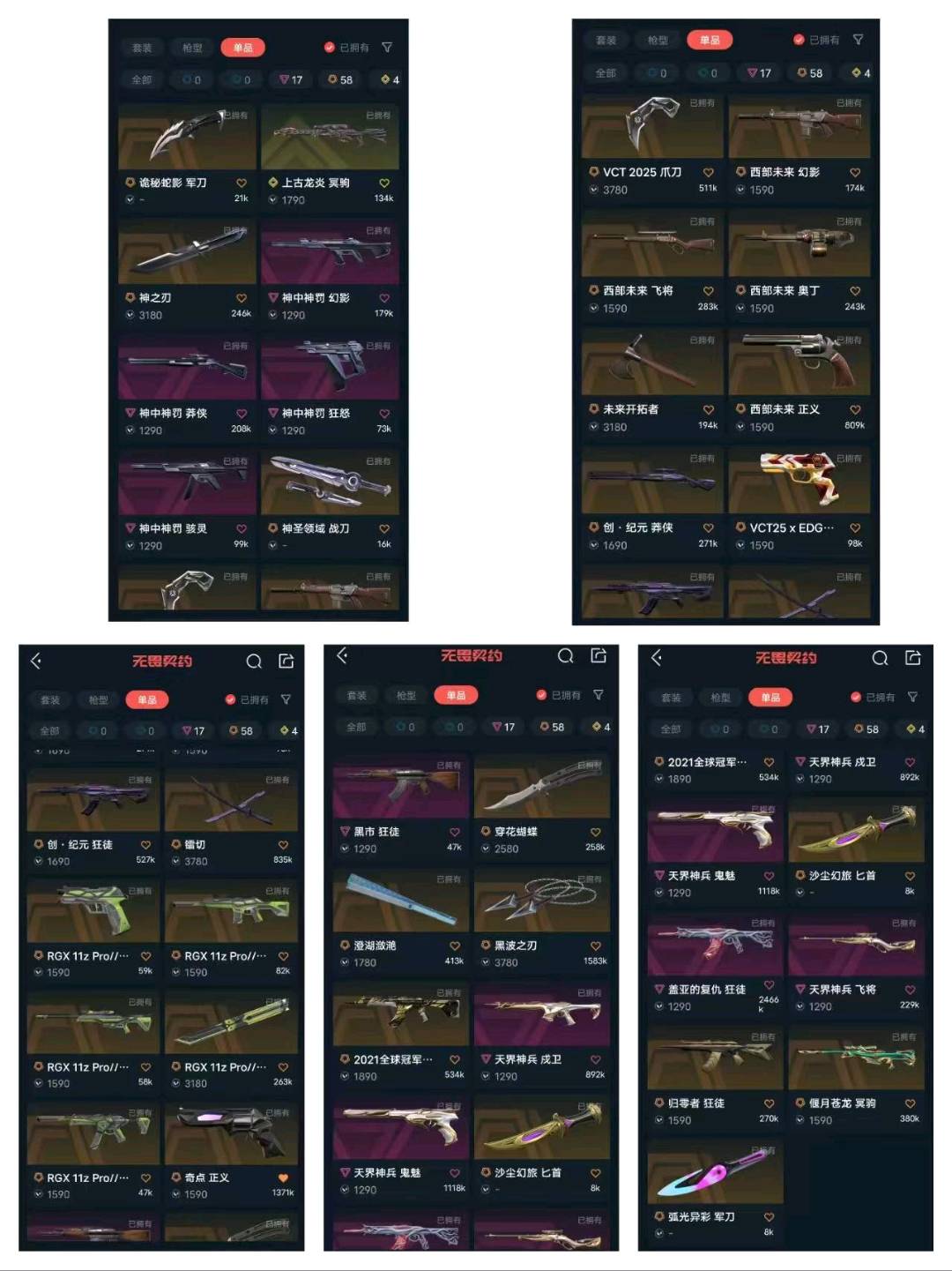 冻结有问题看WG设置;西部未来 奥丁,黑波之刃,镭切,VCT 2025 爪刀,盖亚的复仇 狂徒,虚空遗器 狂徒,洪荒怒焰 狂徒,