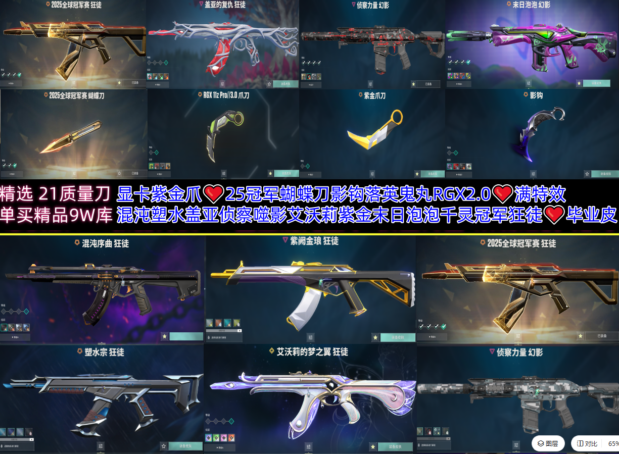 精选21刀❤️显卡紫金爪❤️25冠军蝴蝶刀影钩落英鬼丸❤️混沌塑水盖亚侦察噬影艾沃莉紫金末日泡泡冠军