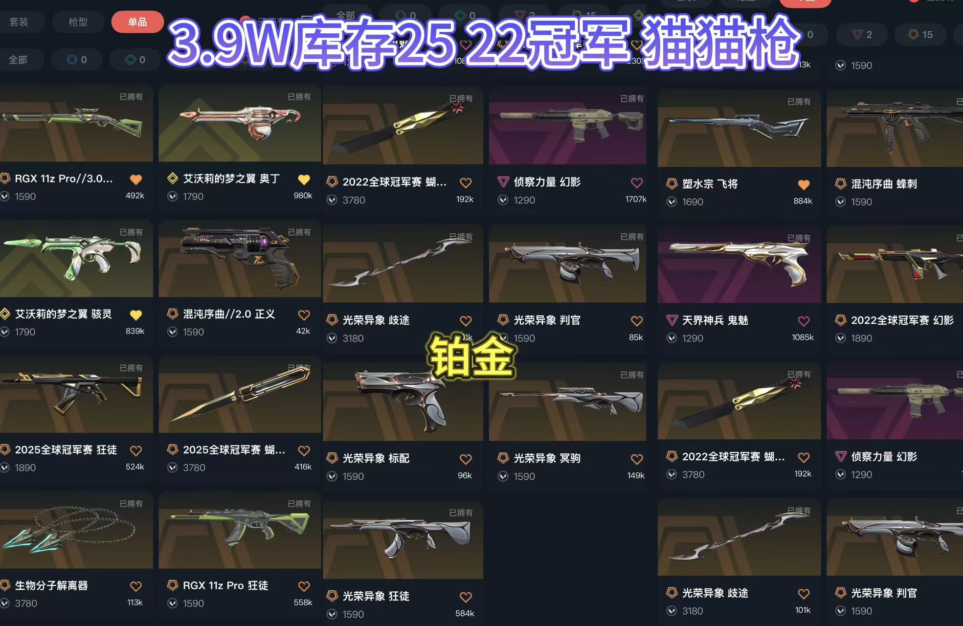 冻结秒解⚡4w 库存 25 冠军 + 22 冠军 + 猫猫枪可排⚡光荣套⚡2022;艾沃莉的梦之翼 奥丁,侦察力量 幻影,RGX 11z Pro 狂徒,光荣异象 狂徒,混沌序曲 蜂刺,塑水宗 飞将,RGX 11z Pro//3.0 莽侠,