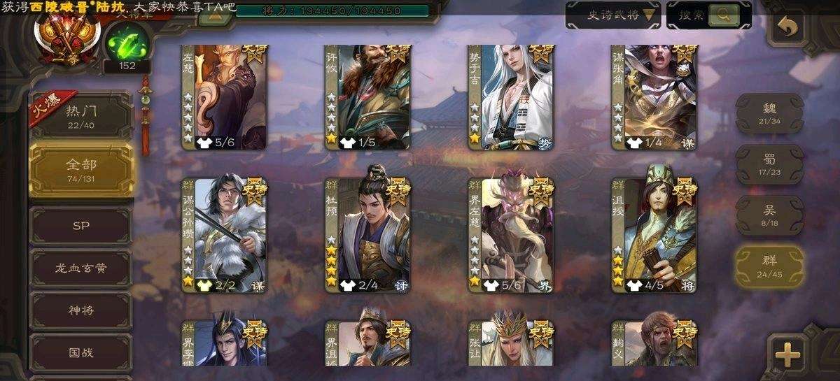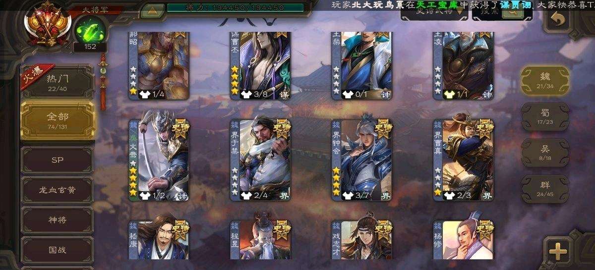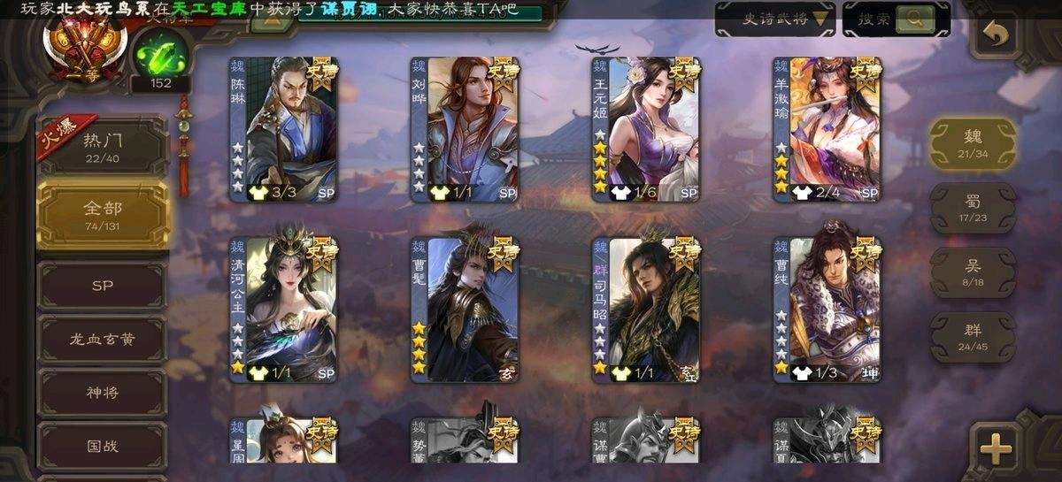 【移动互通版】v12一等大将军✨74史诗78动皮✨回廊神荀彧神鲁肃曹髦刘焉势于吉谋曹丕司马昭清河公主羊徽瑜谋关羽文