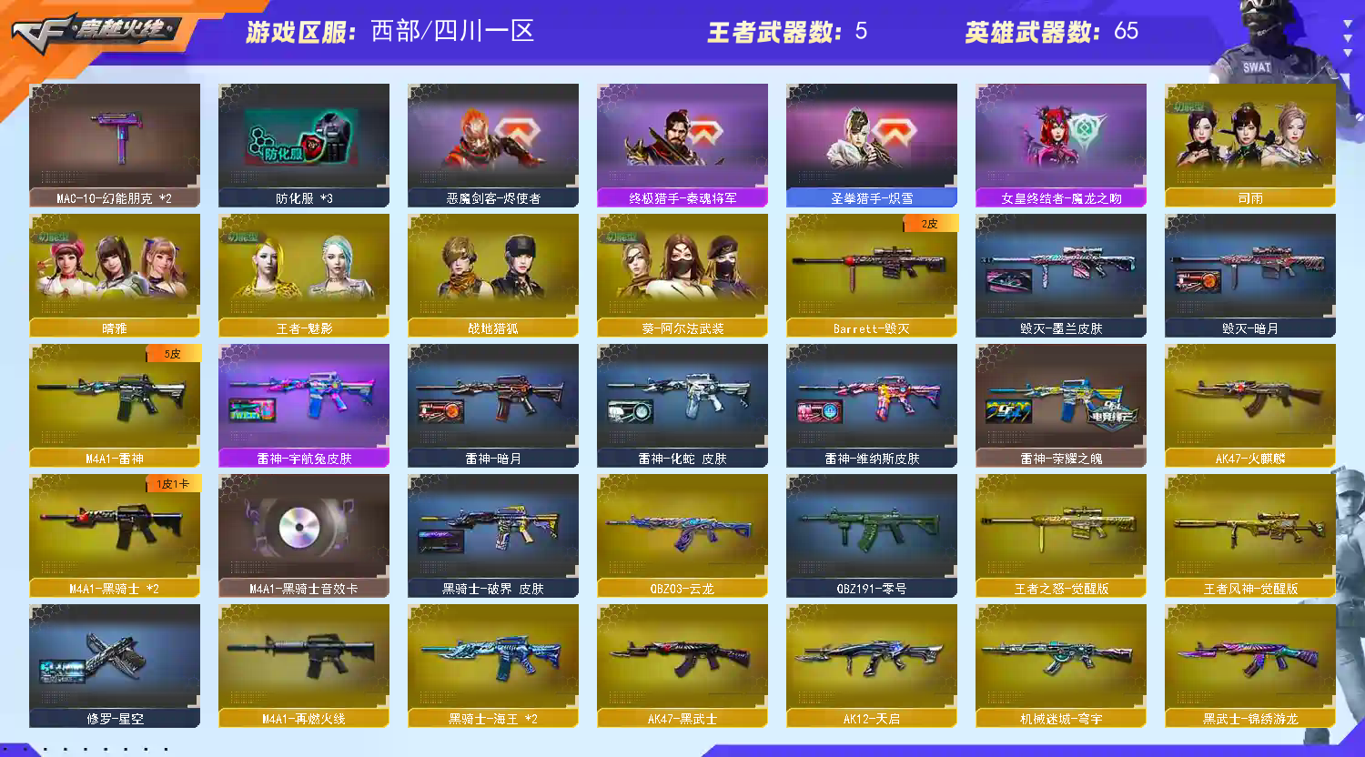 • 游戏区服:穿越火线 / 西部 / 四川一区