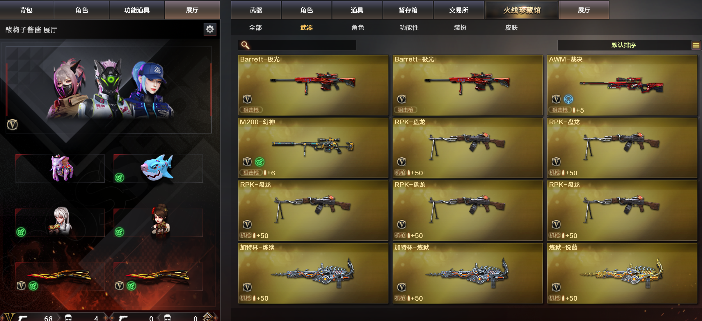 奇幻泡泡象❤双炽芒蝶刃❤四防隼❤5盘6烈、猎手全皮❤mac鲨鱼❤蝴蝶、枪娘、清道夫❤玄豹❤宙斯套
