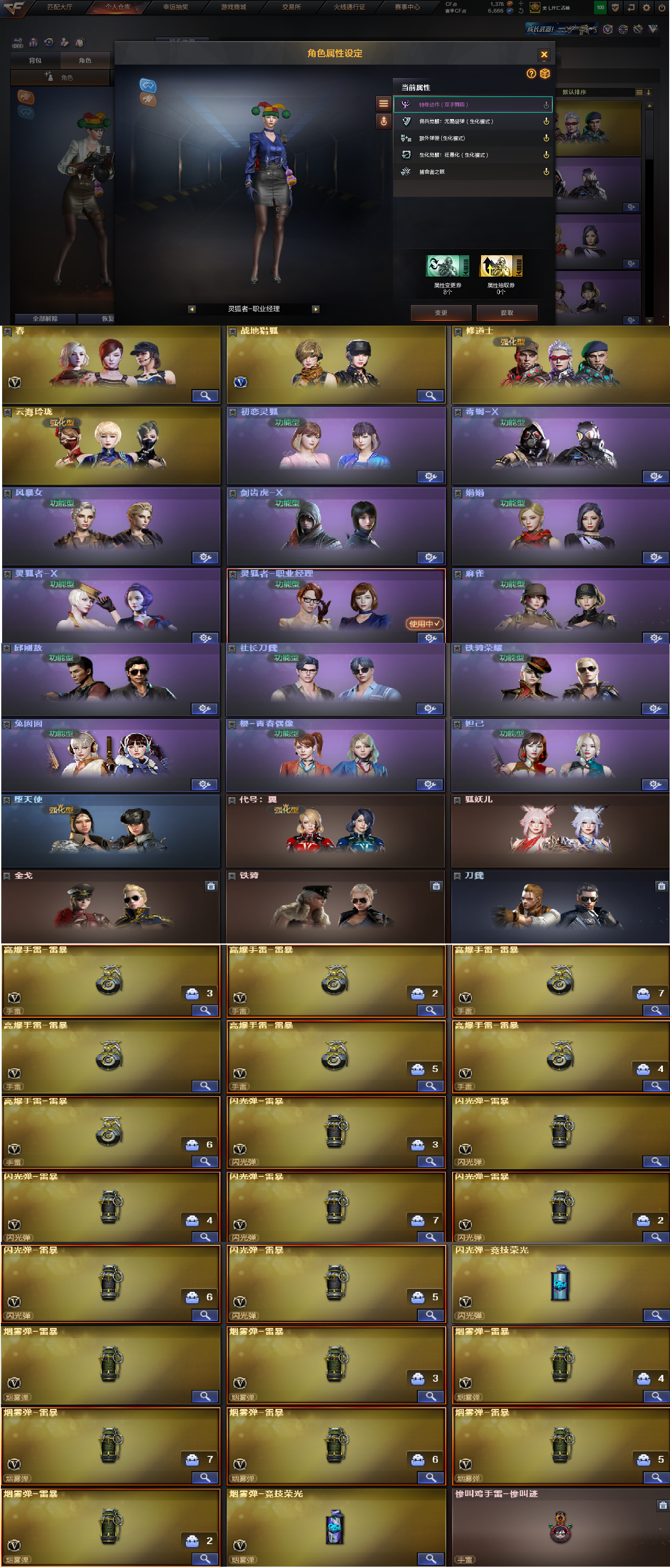 生化爆破号✅四防灵狐者职业经理+带皮幻神+6烈蝴蝶+6盘炼狱🔥雷暴套装+Scar白虎+金色蔷薇🔥