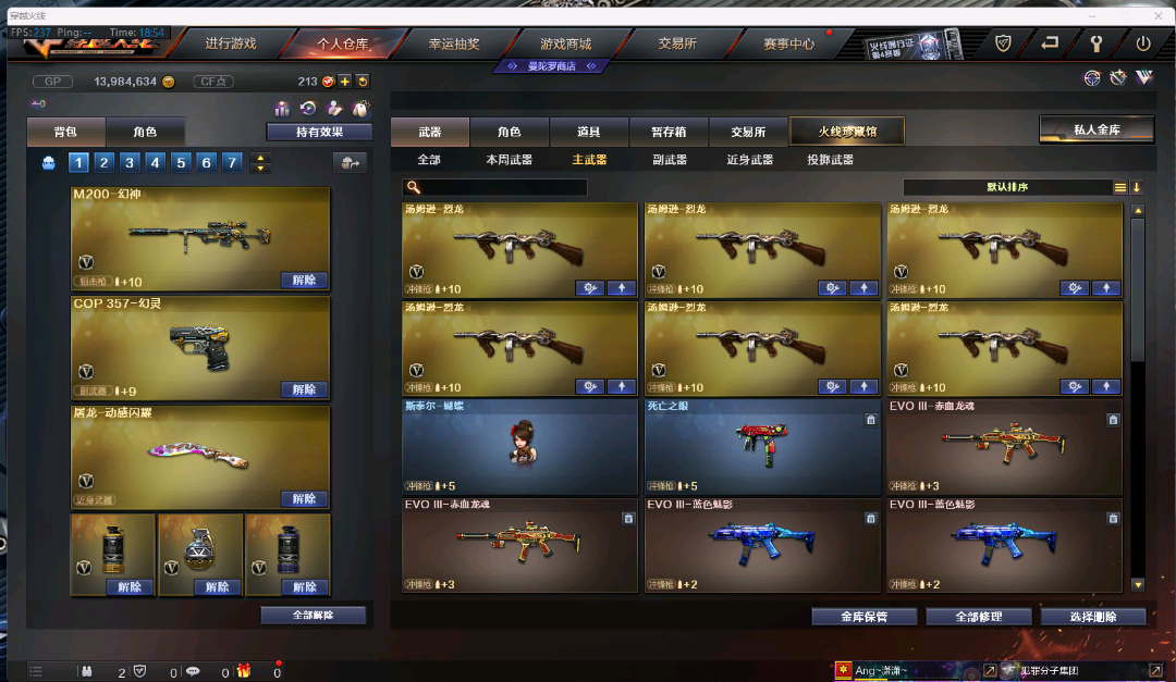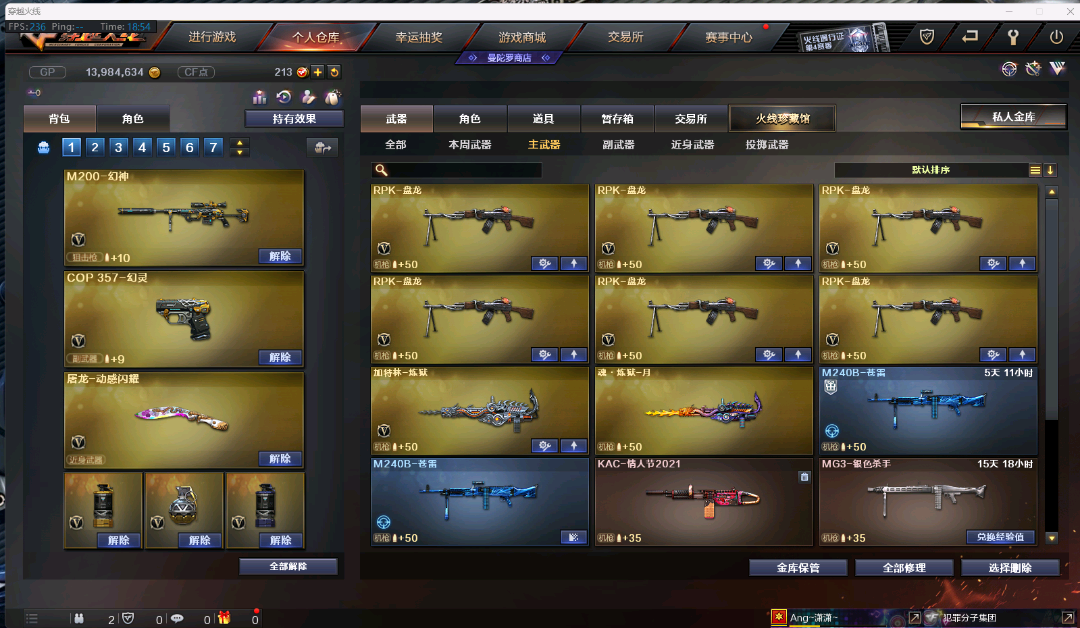 100V;USP-雷暴,RPK-盘龙,QBZ03-金色蔷薇,G36C-幻影,M200-幻神,Scar Light-白虎,