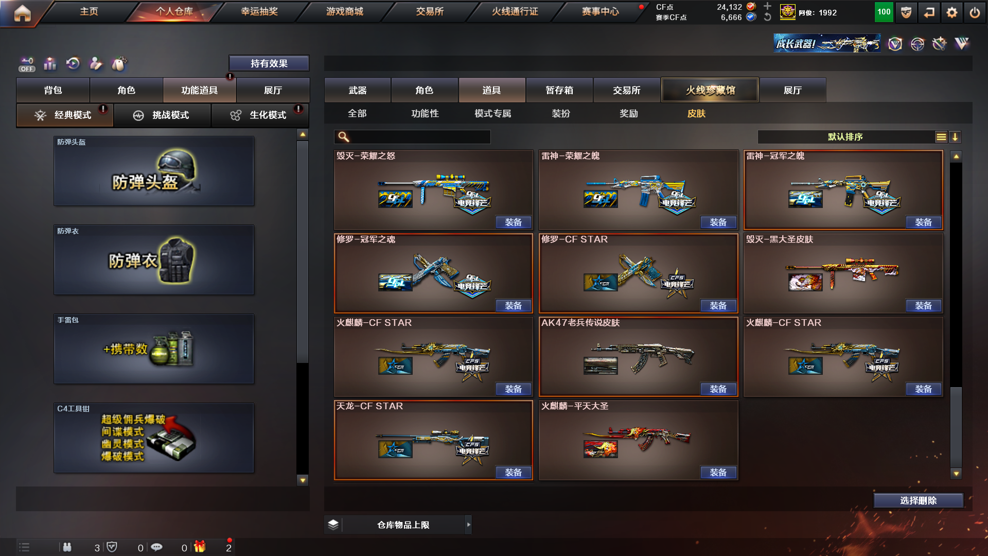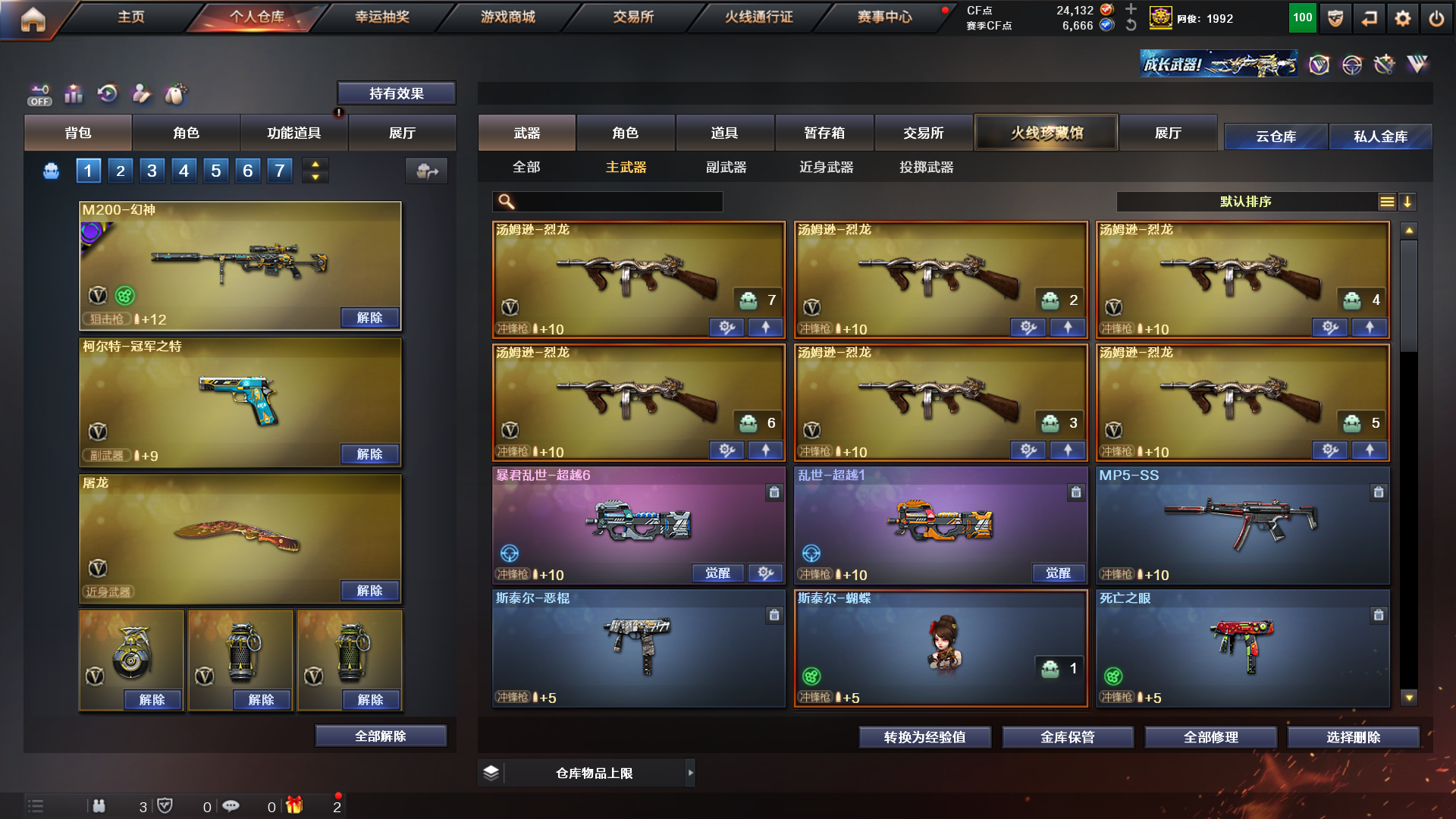 100V✅g36c幻影✅冠军柯尔特✅幻神三件套✅6盘6烈4防满开蝴蝶✅挑战全装✅幻神巅峰荣耀✅满道具