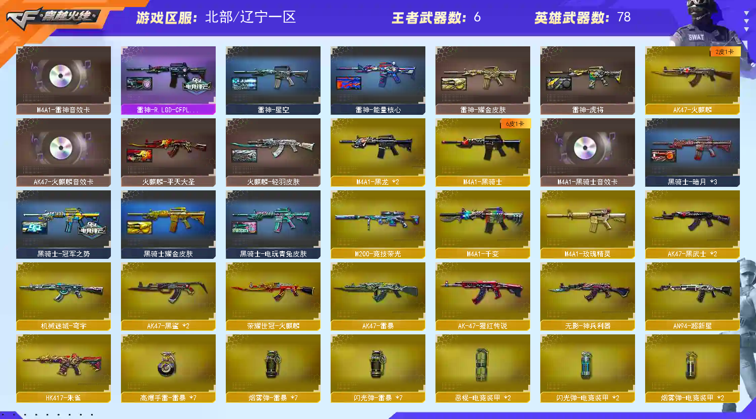 【金色蔷薇3件套!!!】【m200竞技荣光套装+usp雷暴+冠军之特+电竞教官云悠悠】【qbz03金色蔷薇+金色蔷薇音效卡+冠军之薇皮肤+ag皮肤】【毁灭+毁灭音效卡】【雷神+雷神音效卡+lgds18冠军皮肤】【火麒麟+火麒麟音效卡+呛娘凯萨林皮肤】【黑骑士+黑骑士音效卡+冠军之势皮肤】【雷暴套装】【荣耀世冠火麒麟】【千变 火麒麟 黑龙 雷神 黑骑士 黑武士 超新星 黑鲨 龙血 无影神兵利器 朱雀 机械迷城穹宇 玫瑰精灵 烈火 猩红传说 毁灭 裁决 炼狱 烈龙】——【热门武器/小人呛】【雷神精英刀锋 炼狱迷你小刚 cop白鲨 斯泰尔蝴蝶】【冠军之特 usp雷暴 cop雷霆王者 修罗 天神 柯尔特电竞装甲】【屠龙 龙啸 擎天 麒麟刺 斩神刀雷暴 擎天竞技荣光 王者之锋 王者之啸 王者之刺】——【雷暴投掷套装*7】【电竞装甲投掷套装*2】【竞技荣光投掷套装】——【角色】【4防电竞教官云悠悠 灵狐者职业经理】【春 樱 炫】;USP-雷暴,柯尔特-冠军之特,电竞教官-云悠悠,QBZ03-金色蔷薇,