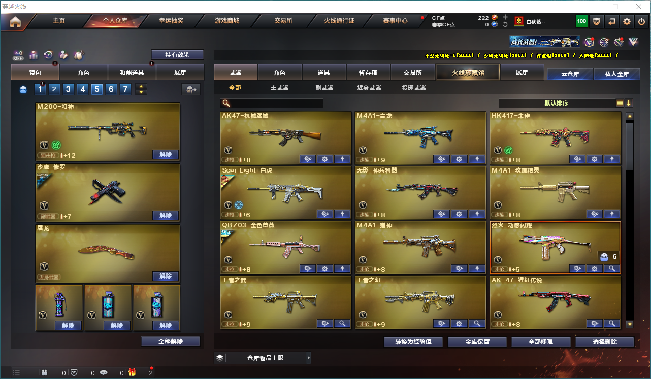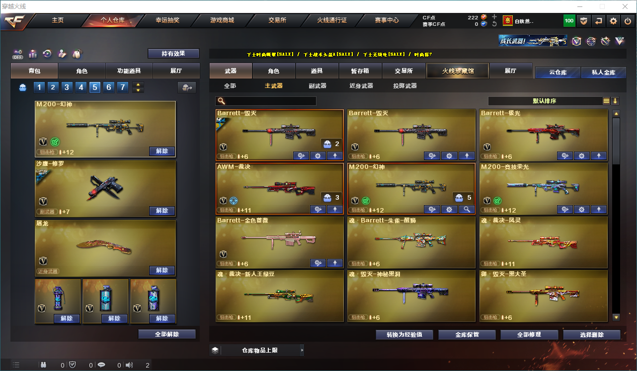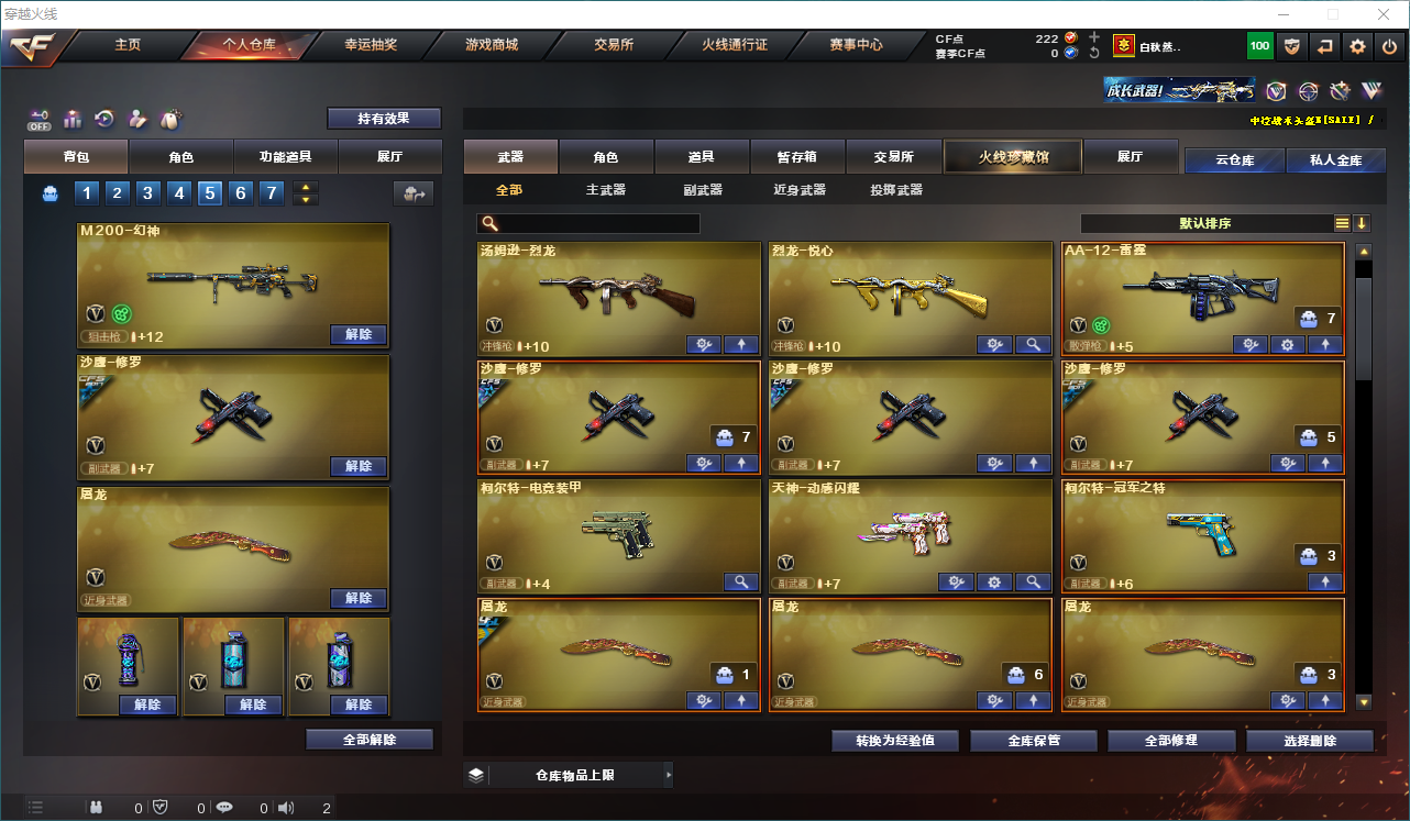 85V7王者5炫金可排位/M200幻神+柯尔特冠军之特+冠军之刃/M200+竞技荣光+擎天竞技荣光+3套竞技荣光雷/M4青龙/HK417-朱雀/白虎/白虎电玩蓝兔/柯尔特电竞装甲+尼泊尔电竞装甲+4套电竞装甲雷/1炼狱4烈龙+死亡之眼/COP白鲨/5屠龙/【四防】王者葵惊若翩鸿/【四防】女主播+鹿小町语音包/职业选手+绝迹语音包/黑骑士音效卡/QBZ03-金色蔷薇音效卡/火麒麟音效卡/毁灭音效卡/雷神音效卡/HK417-朱雀-武当/雷神脉冲核心/QBZ03-冠军之薇/雷神宇航兔/雷神-R.LGD-CFPLS18冠军/毁灭风暴/白虎-AG-CFPLS20冠军/火麒麟战神关羽/黑骑士冠军之势/火麒麟雷神/M4战神赵云/修罗CFS2018/黑骑士战神马超/雷神-CFS2019/屠龙荣耀之锋/毁灭荣耀之怒/火麒麟冠军之心/雷神虎将/火麒麟华夏之心/雷神冠军之魄/金色蔷薇-空/激光毁灭者3/神圣爆裂者3/巨龙咆哮3/KAC-圣炎切割者3/巡航者/黄金猫猫手套白鲨/牛牛AK/王者之幻觉醒/王者之武觉醒/炫金武士/炫金骑士/炫金毁灭/炫金天龙/炫金修罗/堕落女神/狐影/葵/奇洋探员/乔伊教练/王者之瞳/修道士/雨棠/【长时效】烟雾保护头盔+闪光护目镜/BS战队炫彩背包/全背包/永久防弹衣+永久防弹头盔+永久C4工具钳+永久手雷包;柯尔特-冠军之特,Knife-冠军之刃,QBZ03-金色蔷薇,M200-幻神,Scar Light-白虎,