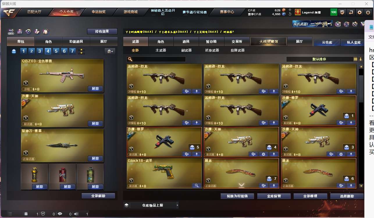 【m200幻神+黄忠】【6盘龙 炼狱 6烈龙 死亡之眼 】【qbz金色蔷薇】【hk417朱雀】【火麒麟】【黑龙】【雷神+卡】【黑骑士+卡】【毁灭】【极光】 【武器:武圣 王者之心 王者之势 王者之戮 天龙 王者之怒 王者之决 】 【5手呛:修罗*2 天神*2 武圣 】 【10刀具:屠龙*3 龙啸*4 擎天 尼泊尔雷霆 斩神刀雷暴 】 【3雷套:雷暴雷 雷霆雷*2】 【小人呛:】 【音效卡: 雷神音效卡 黑骑士音效卡 】 【角色:葵 樱 炫 王者瞳闭月羞花 】;RPK-盘龙,QBZ03-金色蔷薇,M200-幻神,