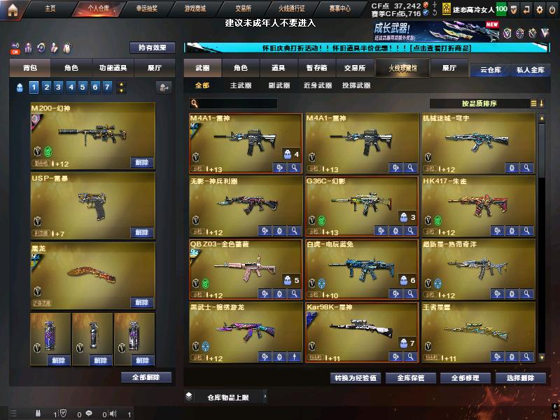 禁止利用账号进行开挂、使用辅助违规软件诈骗等违规操作。;USP-雷暴,炽芒蝶刃,传说影煞,QBZ03-金色蔷薇,G36C-幻影,M200-幻神,Kar98K-星神,