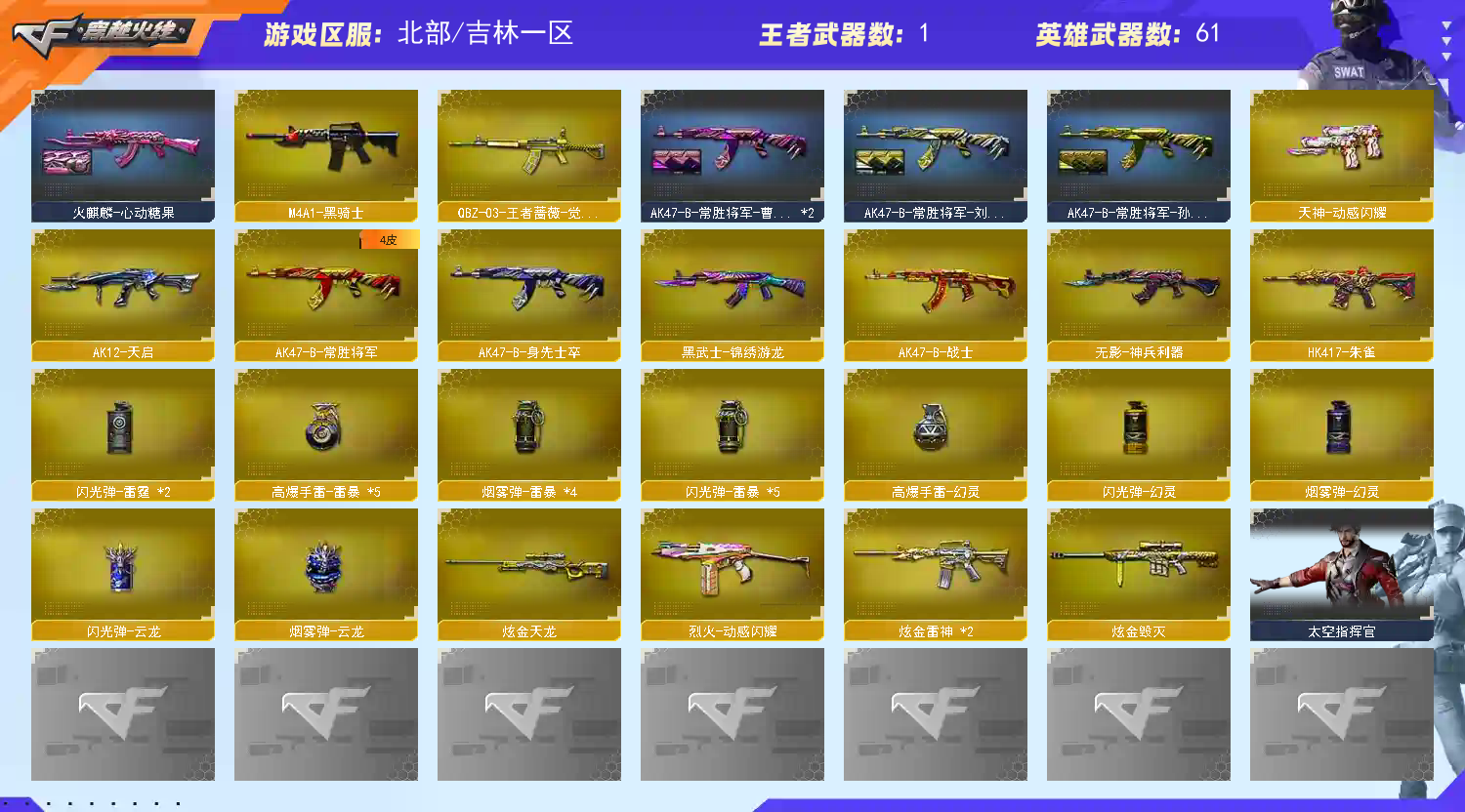 • 游戏区服:穿越火线 / 北部 / 吉林一区