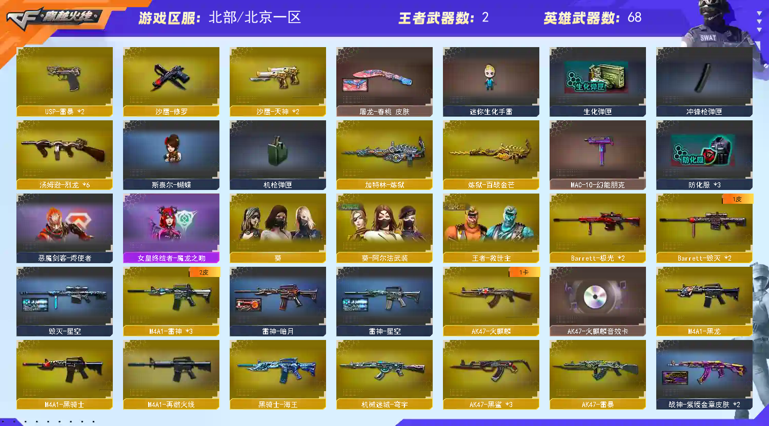 • 游戏区服:穿越火线 / 北部 / 北京一区