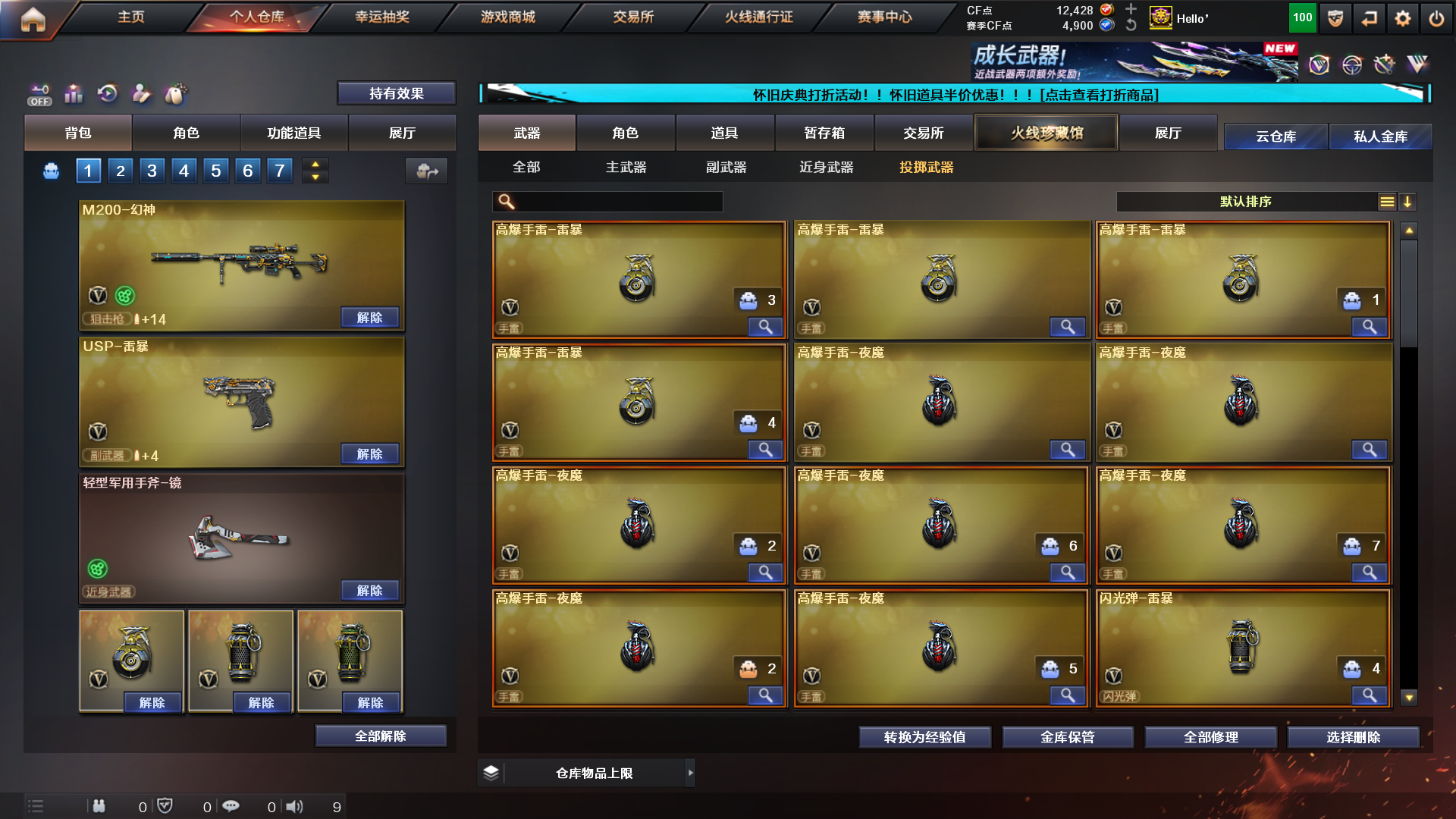 东部战区:福建、安徽、上海、浙江、江苏、教育大区及移动专区的游戏账号。 编号E484号|128V|江苏一区|昵称:HelIo(VIP5) 本号装备更新于:2022年11月4日 【皮肤】:M4A1-千变-孔明皮肤、雷神-荣耀之魄、黑骑士耀金、毁灭耀金、AG毁灭、火麒麟传奇EVEN、雷神虎将、华夏之心、黑武士361、烈龙星空、毁灭星空、火麒麟-CFSTAR、极光-能量核心、修罗-能量核心、毁灭-暗月、黑龙-暗月、战神-粉色甜心皮肤、战神-紫绶金章皮肤、战神-流金岁月皮肤、火麒麟-平天大圣、 【角色】:捕食者之眼+无需换弹、凌霄、魅影、迷迭香、圣诞潘多拉-X、影武者-X、娟娟、职业选手、西部牛仔-专属、王者玲珑、北极狐-X、暗夜-X、剑齿虎、潜龙队-X、铁骑荣耀、空、灵狐者、精英部队、猎狐者-英特尔、雅典娜、雷霆-β、幻影、飞虎队、金戈、奥摩、新奥摩、新斯沃特、铁骑、斯沃特、 【王者】:王者之怒、王者之心、王者之魄x2、王者之啸、炼狱-悦蓝x2、斯泰尔蝴蝶(生化迷你)、CAT猫枪、COP-旗袍、 【主武】:M4A1-夜魔(首发2021新年套)、Scar Light-白虎(首发)、烈龙x8、盘龙、加特林炼狱、AA12-雷霆、M200-幻神、HK417-朱雀(首发)、M4A1-青龙(首发)、AK47-雷暴、QBZ03-金色蔷薇、黑武士-CF网剧冠军、毁灭x2、裁决、雷神、黑龙、火麒麟、黑骑士、超新星、AK47-B-战士、AK47-B-战神、猩红传说、黑骑士-海王、御·雷神-小白龙、源·毁灭x2、源·天龙x3、源·天启x2、源·雷神x2、源·火麒麟x2、源·超新星、源-黑龙x2、天蝎座、火麒麟-桃园结义x2、M4A1-仙界-黑骑士x2、M4A1-英雄-能量核心、神圣爆裂者IIIx2、AK47-十二生肖-蛇、黑骑士-摸金校尉、HK417-赤血龙魂x4、98K-黑金、暗金M200x2、黄金加特林x2、黄金乌兹双枪、黄金AK-47x3、斯太尔-封神、御·雷神-烈虎、 【副武】:破空枪刃-夜魔(首发年套) x2、修罗x2、沙鹰-天神、USP-雷暴x2、COP-堕天神x2、天神-CF网剧冠军、COP-小白龙x5、麦特左轮-黑金神龙、修罗-摸金校尉、COP-绚樱x2、COP-青花瓷、COP-二次元x2、Colt 1911-大黄蜂x3、COP357x2、 【近身】:马来剑-夜魔(首发年套)、水晶宝珠、擎天、斩神刀-雷暴x2、擎天-网剧冠军、轻型军用手斧-镜、唐刀-九五至尊、丛林匕首-卧龙x4、丛林匕首-黑虎、丛林匕首-蜀国、女皇利刃-双子座、龙珠、金砖、破天灵蛇、破天斩魔剑、鹰爪-枪王排位、 【投掷】:虎牙手雷(绝版稀有)x2、斗鱼手雷(绝版稀有)x3、高爆手雷-夜魔(首发年套)x7、烟雾弹-夜魔(首发年套)x7、闪光弹-夜魔(首发年套)x7、烟雾弹-雷暴x5、闪光弹-雷暴x4、高爆手雷-雷暴x4、迷你生化手雷、闪光弹-小乔、高爆手雷-太极、惨叫鸡高爆手雷x3、高爆手雷-雷蛇、高爆手雷x2、凤凰之息x2、闪光弹-CFS2017纪念版、手雷-CFS2017纪念版、烟雾弹-CFS2017纪念版、闪光弹-网把、玫瑰手雷、 【光效】:加特林-炼狱红绿色光效、M4A1-千变红绿色光效、炼狱-悦蓝金色光效x4、王者之啸金色光效、王者之幻金色光效、王者之魂金色光效x2、王者之怒金色光效、王者之魄金色光效、修罗蓝色光效x3、雷神蓝粉色光效、天龙蓝色光效、 【玩偶】:潜伏者玩偶装饰、黄金幸运猪猪玩偶、羊驼玩偶、胡司令玩偶、 【道具】:雷神音效卡、火麒麟音效卡、毁灭音效卡、黑骑士音效卡、超级背包、炫彩背包、EStar炫彩背包、XROCK炫彩背包、步枪弹匣(3568天 185)、冲锋枪弹匣(244天6小时)、狙击枪弹匣(648天2小时)、夺命之镰(2天1小时)、防化服(11天1小时)、灵魂忍者(矮子)(516天4小时)、疯狂宝贝(145天1小时)、AC爆破全装、烟雾头护目镜、7个背包;USP-雷暴,RPK-盘龙,QBZ03-金色蔷薇,M200-幻神,Scar Light-白虎,