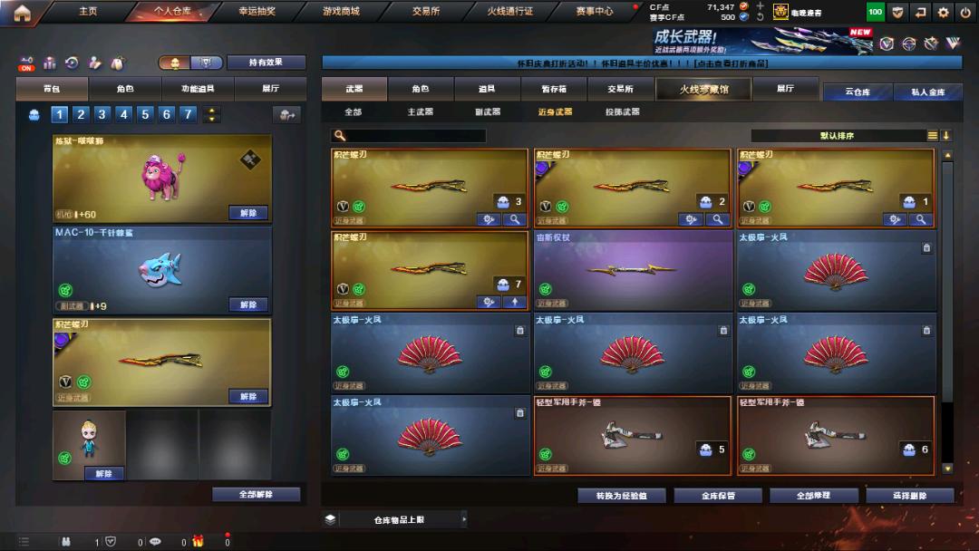 首页 > 租号大厅 > 穿越火线 > 北部/河南一区 > 生化中高配 3防莲华4防玫瑰隼4刀2皮鲨鱼mac六烈五盘粉狮子3蝴蝶2蛇影双娇宙斯套1玄武裁决+音效