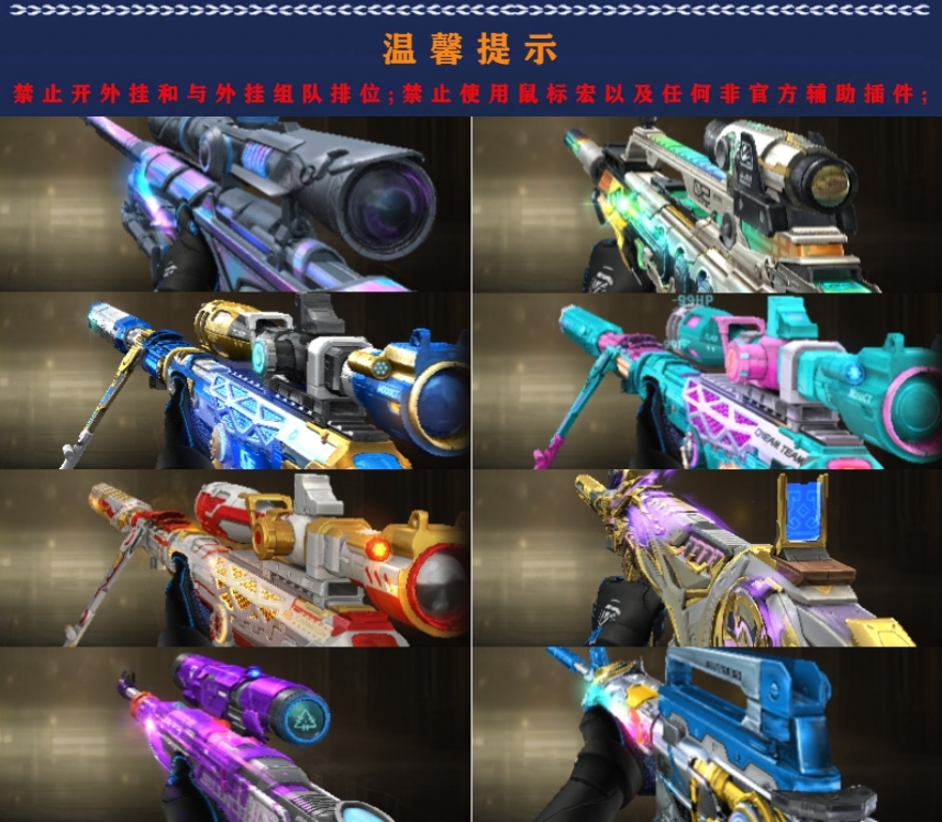 裁决三件套,幻神3皮,高质量手枪,幻影白虎,毁灭星神三件套,六烈毒蜂清道夫,潘多拉暗夜n,禁止外挂