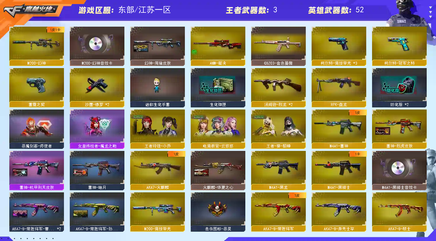• 游戏区服:穿越火线 / 东部 / 江苏一区