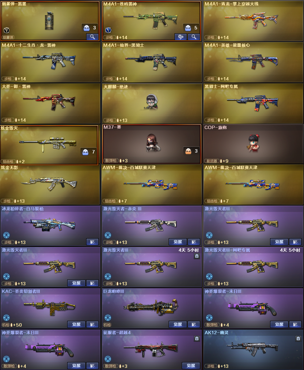 爆破全装号✅雷霆套✅QBZ金色蔷薇✅4皮肤火麒麟✅双皮肤毁灭✅双皮肤雷神✅双皮肤黑骑士✅炫鹰零