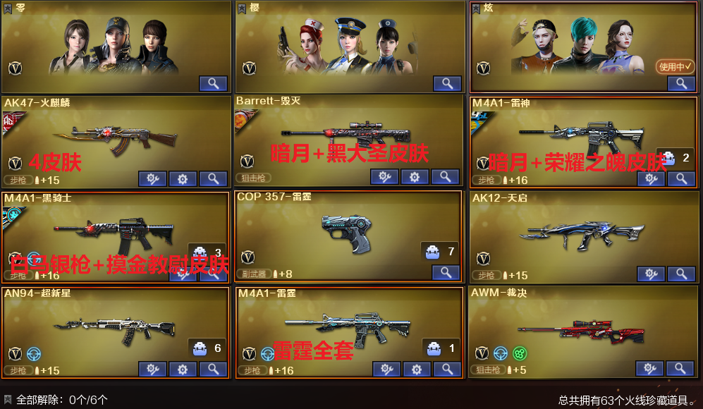 首页 > 租号大厅 > 穿越火线 > 电信区/广西一区 > 爆破全装号✅雷霆套✅QBZ金色蔷薇✅4皮肤火麒麟✅双皮肤毁灭✅双皮肤雷神✅双皮肤黑骑士✅炫鹰零