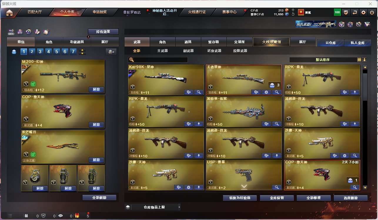 【亮点解析 传说角色 幻神三件套 武器齐全 】【四防传说艾莉莎 】【m200幻神+音效卡+ag24冠军+荣耀世冠白鲨+usp雷暴】【98k星神+漫游】【王者星神 】【传说夜影 传说破晓 】【白虎之魄】【qbz金色蔷薇+ag19冠军】【qbz天罚+卡】【火麒麟+巅峰荣耀】【雷神+s18冠军】【黑骑士+冠军之势】【毁灭+卡+ag15冠军+sv16冠军】【极光】【裁决+巅峰荣耀】【炽芒蝶刃+冠军炽芒】【雷暴套 】 【武器:天戒 海王 王者龙血 盘龙*2 炼狱 烈龙*3】 【4手呛:天神*3 usp雷暴 】 【7刀具:屠龙*2 斩神刀雷暴 龙啸烈火龙威 】 【7雷套:雷暴雷*5 竞技荣光雷*2】 【小人呛:斯太尔蝴蝶】 【音效卡:天罚音效卡 毁灭音效卡 幻神音效卡 】 【四防角色:王者瞳闭月羞花 王者葵惊若翩鸿 女主播】;USP-雷暴,炽芒蝶刃,传说艾莉莎,RPK-盘龙,QBZ03-金色蔷薇,M200-幻神,Kar98K-星神,