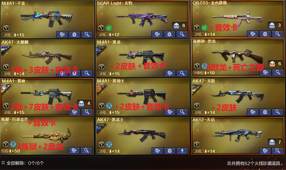 首页 > 租号大厅 > 穿越火线 > 网通区/河南一区 > 生化性价比✅炽雪6烈龙死亡之眼+2盘龙3炼狱音效卡✅玄豹+QBZ金色蔷薇音效卡✅2雷神7皮肤音效卡