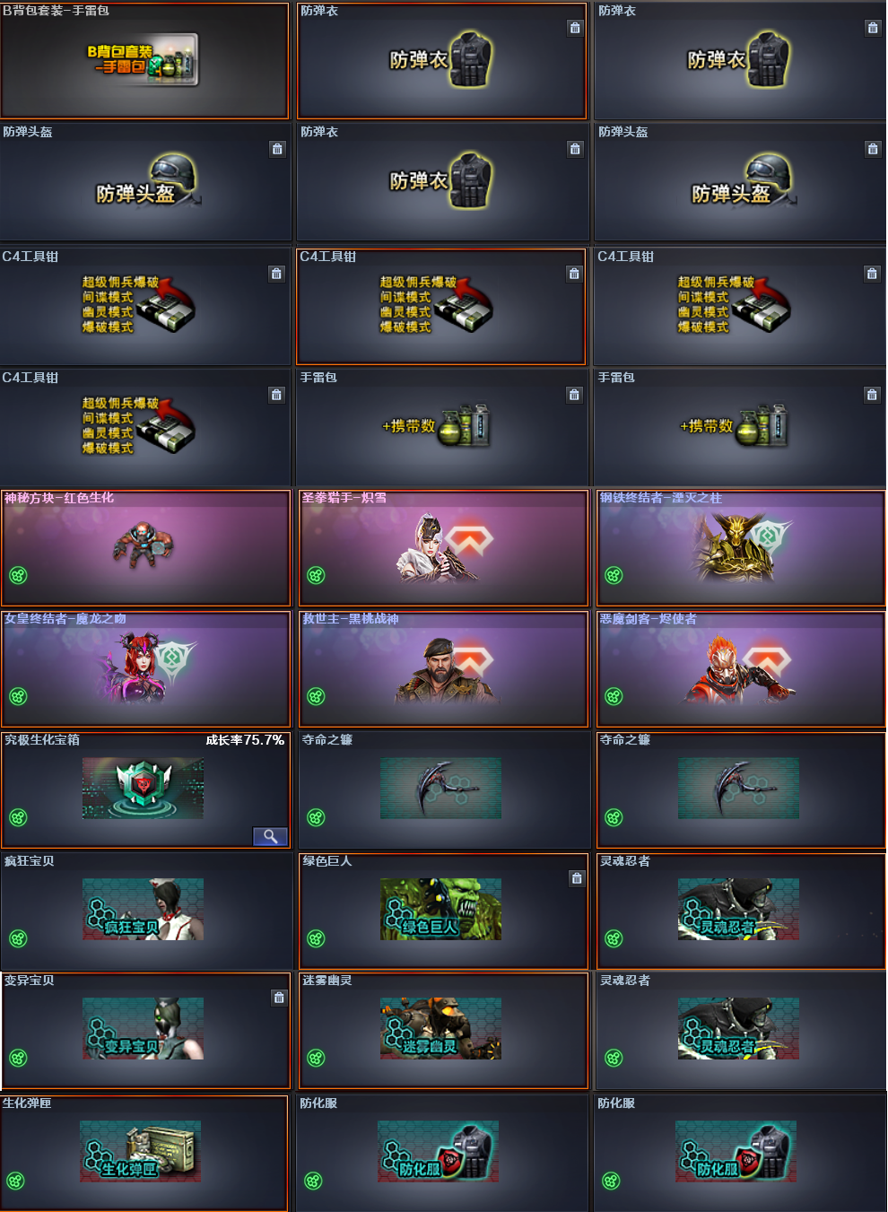 生化性价比✅6烈龙死亡之眼+2盘龙3炼狱音效卡✅玄豹+QBZ金色蔷薇音效卡✅2雷神+7皮肤+音效卡 稀有武器:烈龙X6+死亡之眼、盘龙X2+3炼狱(炼狱百战金芒、炼狱、炼狱风暴)、SCARLight玄豹、QBZ金色蔷薇、HK朱雀、千变、火麒麟X3、黑龙、雷神X2、黑骑士、无影、死神、黑武士、天启、超新星、黑鲨、龙血、无影沈斌护理期。黑武士锦绣游龙、金色蔷薇古蛇迷踪、机械迷城穹宇、玫瑰精灵、9A91烈火、烈火动感闪耀、黑骑士海王、荣耀世冠火麒麟、白虎电玩蓝兔、毁灭、极光、裁决、A12雷霆、修罗X2、天神、USP神工天巧、天神动感闪耀、修罗古蛇迷踪、屠龙、龙啸、擎天、麒麟刺、尼泊尔雷霆、麒麟刺堕天神、屠龙动感闪耀、龙啸热带奇洋、麒麟刺百战金芒、机甲撕裂者3、激光毁灭者3、双面神、KAC青曜、毒刺金线、巨龙咆哮者3、深渊巨龙咆哮者3、VE12金魔、阐释者3、巡航者 稀有角色:王者零华冠丽服(四防:减少闪光效果+免疫队友炸弹伤害+减少掉落伤害+副武器自动装弹)、零纪元、葵阿尔法武装、奇洋探员、乔伊教练、蛇影宗、修道士、暗夜X、毒蝎X、芳心审判者、飞虎队X、嘉年华灵狐、零水下丽影、星光、紫霞 音效卡:QBZ金色蔷薇热带奇洋音效卡、火麒麟音效卡、雷神音效卡X2、毁灭音效卡、极光音效卡、黑骑士音效卡、黑龙音效卡、炼狱百战金芒音效卡 稀有皮肤:雷神机甲刑天皮肤/星空皮肤/动感闪耀皮肤/源计划2.0专属皮肤/海滩派对皮肤/宇航兔皮肤/神秘按键皮肤、黑骑士摸金教尉皮肤/暗月皮肤、毁灭风暴皮肤/耀金皮肤/青帝皮肤/虹光风暴皮肤/英雄计划皮肤、修罗耀金皮肤/星空皮肤/CFstar皮肤、火麒麟传奇EVEN皮肤/CFstar皮肤/心动糖果皮肤、极光能量核心皮肤、黑龙暗月皮肤/361皮肤、无影能量核心皮肤/耀金皮肤、玫瑰精灵蓝调梦幻皮肤、 王者炫金武器:王者之魄觉醒、M4王者堕天神觉醒、王者风神觉醒、炫金火麒麟、炫金雷神X3、炫金武士、炫金毁灭 投掷套装:雷霆套X2、堕天神套、竞技荣光套、手雷动感闪耀、手雷热带奇洋、手雷古蛇迷踪、烟雾弹古蛇迷踪、双生雷恶棍、高爆手雷SS 小人枪武器特殊武器:HK朱雀蛇影宗、M4雷神刀锋精英、KAC黑桃战神、猫猫手套X2;RPK-盘龙,QBZ03-金色蔷薇,