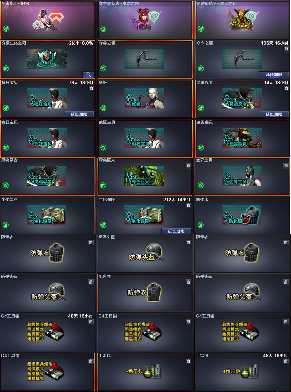 首页 > 租号大厅 > 穿越火线 > 电信区/重庆一区 > 生化性价比✅传说星骇✅6烈龙蛇影双骄+荆棘捕食者之眼+女皇终结者✅玄豹全套✅裁决百城天津运输船✅全弹