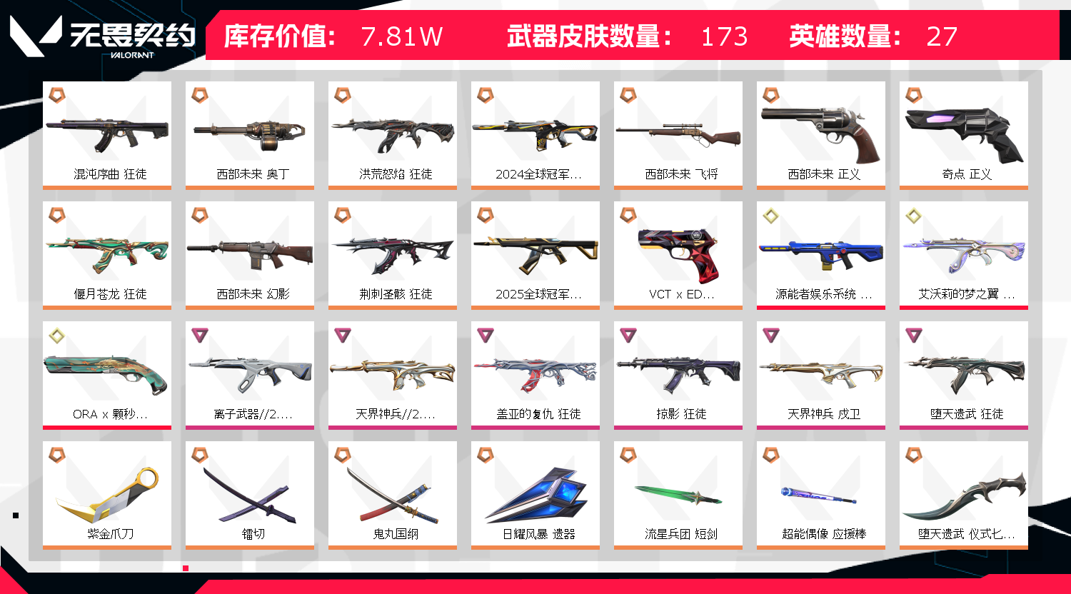 • 皮肤资产价值: 78100