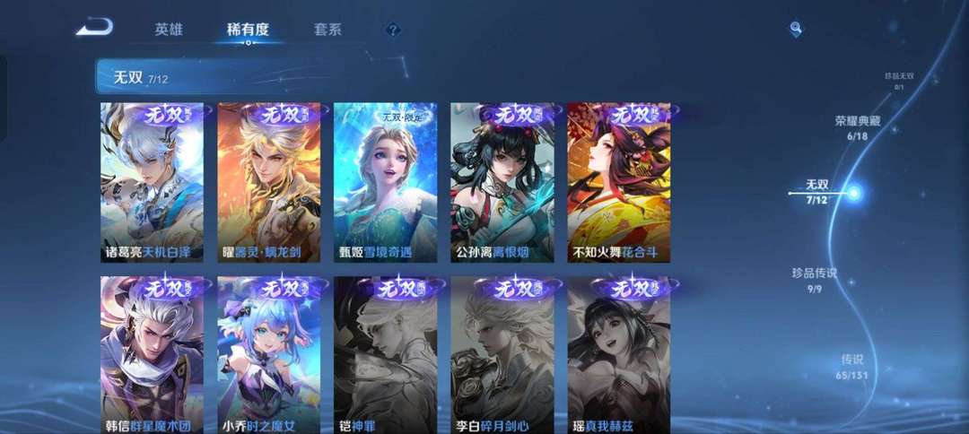 v10、12水539皮、死亡执政官、刘备星传说时之思念、小兵皮肤大耳狗甜茶、瑶无双真我赫兹、愿照·九州拓、怪盗基德、画中仙、至尊宝、凤求凰、神威、天魔缭乱