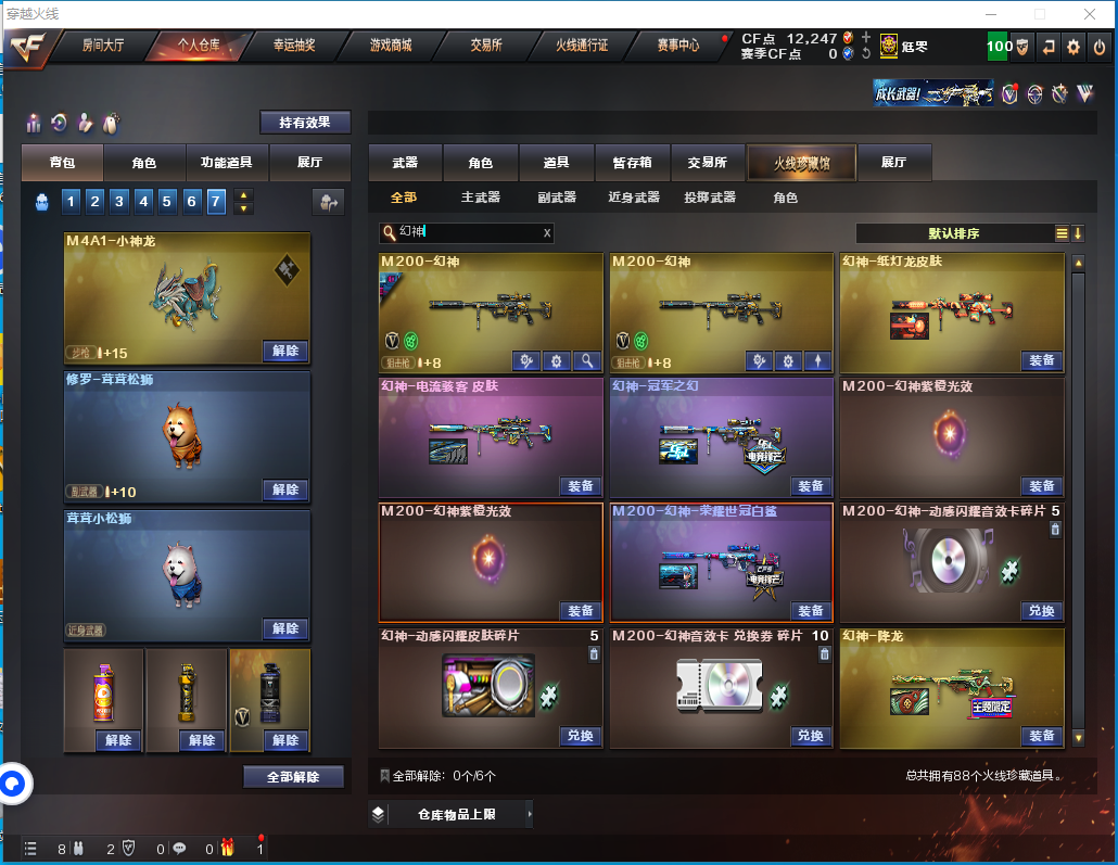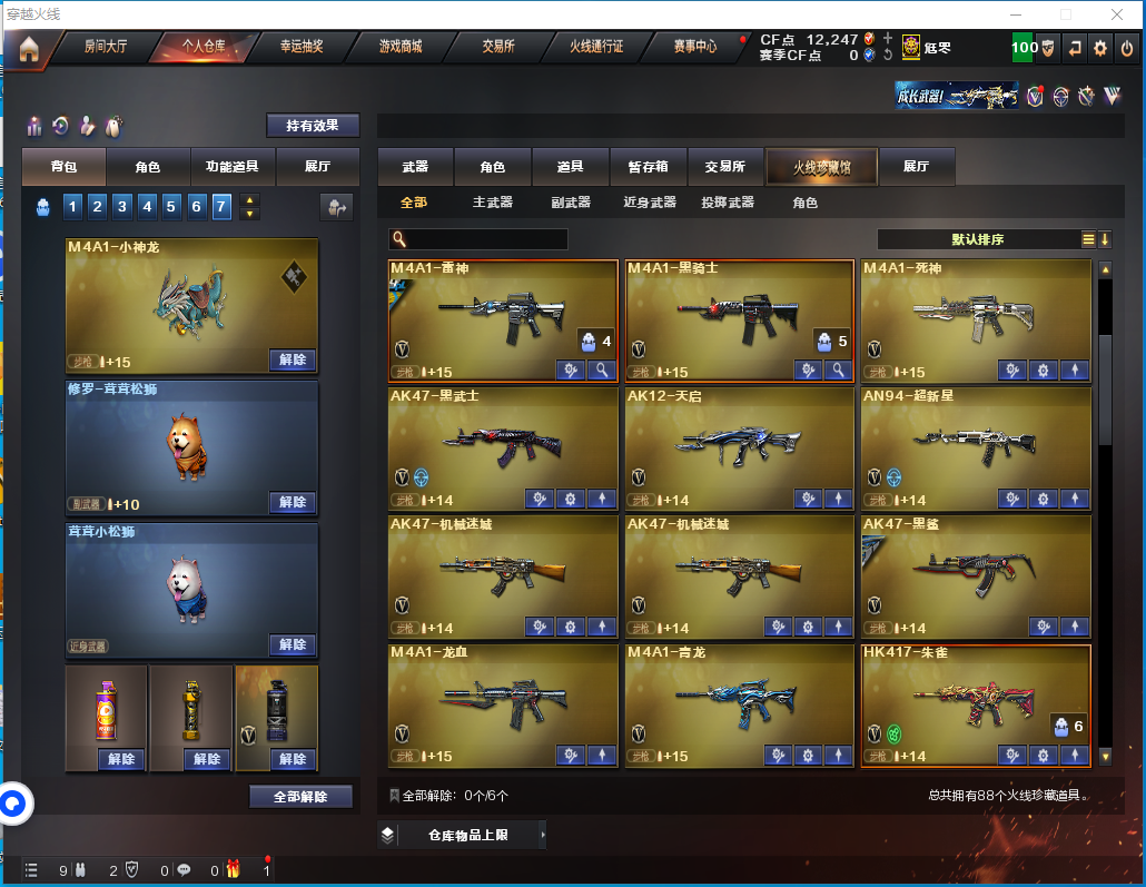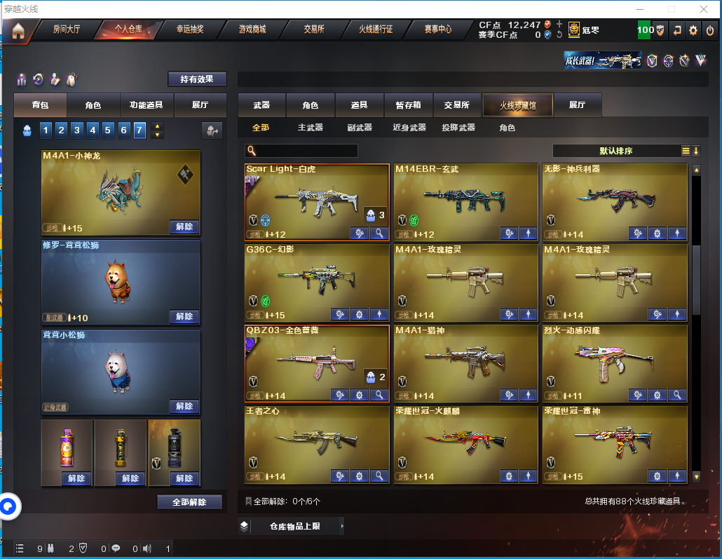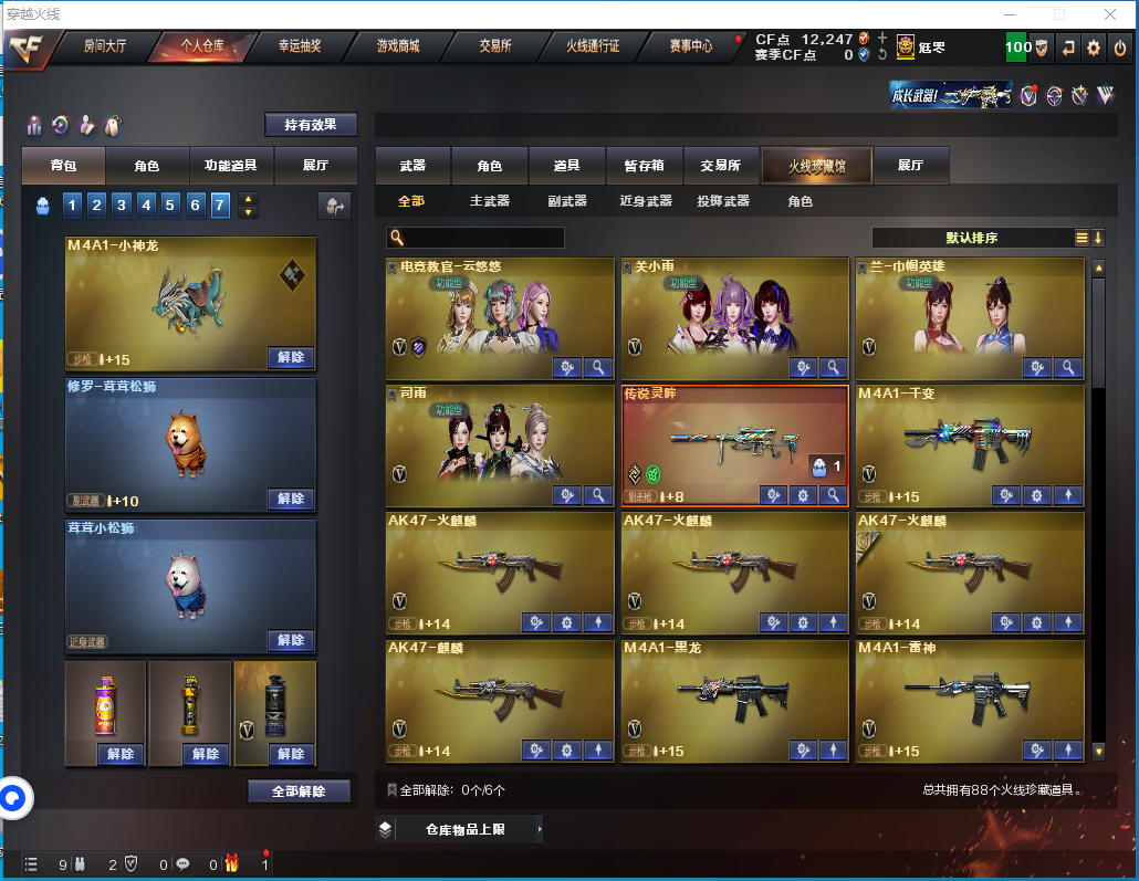 【辽宁一区-辽宁】 83V6王者炫金【主武器类型】 传说灵眸 M200-幻神 *2 王者风神觉醒版 M200-竞技荣光 Kar98K-星神 G36C-幻影 王者芳薇觉醒版 荣耀世冠-火麒麟 荣耀世冠-雷神 Scar-白虎 HK417-朱雀 M14EBR-玄武 Barrett-毁灭 *2 Barrett-极光 王者之力觉醒版 AWM-裁决 M4-小神龙 M4A1-雷神 *2 QBZ03-金色蔷薇 M4A1-黑龙 M4A1-黑骑士 M4A1-千变 M4A1-死神 M4A1-龙血 M4A1-猎神 M4A1-青龙 王者之心觉醒版 AK47-火麒麟 *3 无影神兵利器 AK47-黑武士 AK47-黑鲨 AK47-麒麟 AK47-机械迷城 *2 AK12-天启 AN94-超新星 烈火动感闪耀 烈龙-云海游龙 AA-12-雷霆 AWM-天龙 雷神小红 Cat-刀锋 M4A1-玫瑰精灵 *2 M4小黄鸡 Barrett暗月传说 Barrett金色蔷薇 地狱征服者超越Max 死亡之眼 AK47-B十周年 黄金AK 烟雾弹-荣耀世冠白鲨2023 高爆手雷竞技荣光 高爆手雷幻灵 *3 闪光弹幻灵 *4 烟雾弹幻灵 *3 手雷-云海游龙 动感闪耀手雷 【王者武器】 【副武器类型】 USP雷暴 荣耀世冠-柯尔特 柯尔特-竞技荣光 柯尔特赛博朋克 USP-神工天巧 真的是手枪 修罗-茸茸松狮 沙鹰-修罗 *3 沙鹰-天神 *3 天神动感闪耀 Colt1911小故障 Cfcolt1911大黄蜂 【近身武器类型】 蝴蝶刀-炽芒蝶刃 屠龙 *2 幻灵之锋 屠龙动感闪耀 荣耀世冠-龙啸 龙啸 麒麟刺 擎天-竞技荣光 擎天 擎天-云海游龙 唐刀-神工天巧 荣耀之证 猫猫手套 金刚伞电玩红兔 军用手斧镜 夺魂 【稀有角色】 电竞教官-云悠悠 王者潘多拉 关小雨 兰-巾帼英雄 司雨 王者葵-惊若翩鸿 职业选手 木兰 云海玲珑 乔伊教练 潘多拉X 铁骑荣耀 幻影 堕天使 超级护目镜 闪光护目镜 【武器皮肤及道具】 幻神-冠军之幻 M200-幻神-荣耀世冠白鲨 幻神-电流骇客 幻神-纸灯龙 幻神-降龙 星神-破竹 白虎-虎啸 白虎-大汉风骨 QBZ03-巅峰荣耀 雷神-荣耀之魄 雷神-荣耀世冠AG 雷神-巅峰荣耀 雷神-暗月 雷神-虎将 火麒麟-大唐荣光 火麒麟-心动糖果 火麒麟-白虎 火麒麟-荣耀世冠AG 黑鲨-电流骇客 毁灭-墨兰 毁灭-云海游龙 毁灭-星空 黑骑士-AG-S4冠军典藏 Scar-白虎-暗星 黑龙-能量核心 AWM-天龙-传奇70KG AWM-天龙-传奇白鲨 屠龙-荣耀世冠AG 龙啸-冠军之啸 毁灭音效卡 QBZ03-金色蔷薇音效卡 极光音效卡 【稀有套装】;USP-雷暴,荣耀世冠-柯尔特,炽芒蝶刃,电竞教官-云悠悠,QBZ03-金色蔷薇,G36C-幻影,M200-幻神,