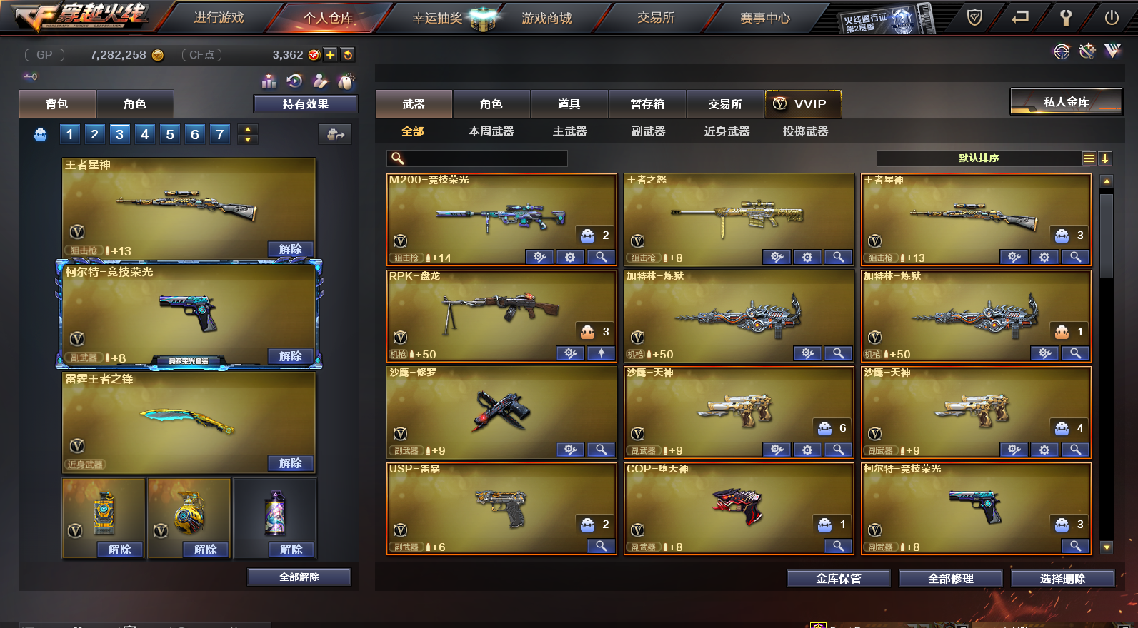 开挂必究!!!科技大佬,手下留情!!挣钱不易 1 竞技荣光4件套( M200+柯尔特+擎天+7套手雷组合) 2 王者星神+星神光效+玩偶 3雷神(宠儿皮肤+星空皮肤+荣耀之魄)黑骑士(暗月皮肤)小人枪M4 雷神-赛博朋克 玫瑰精灵 黑骑士-海王+玩偶 3 火麒麟(cF star赛事皮肤+华夏之心皮肤 +雷神皮肤+平天大圣皮肤)AK-黑武士、AK-无影 、AK黑鲨、AK-暗月+玩偶 4 毁灭(星空皮肤+耀金皮肤+青帝皮肤)王者之怒+玩偶 5 天龙(cf star赛事皮肤) 6 雷霆王者之锋+雷暴USP+堕天神COP+COP旗袍) 7 屠龙 龙啸 擎天 等 8 加特林 裁决-雪莉杨 沙鹰-修罗 沙鹰-天神等科技大佬!手下留情!赚钱不易啊!开挂必究 谢谢各位老板!;