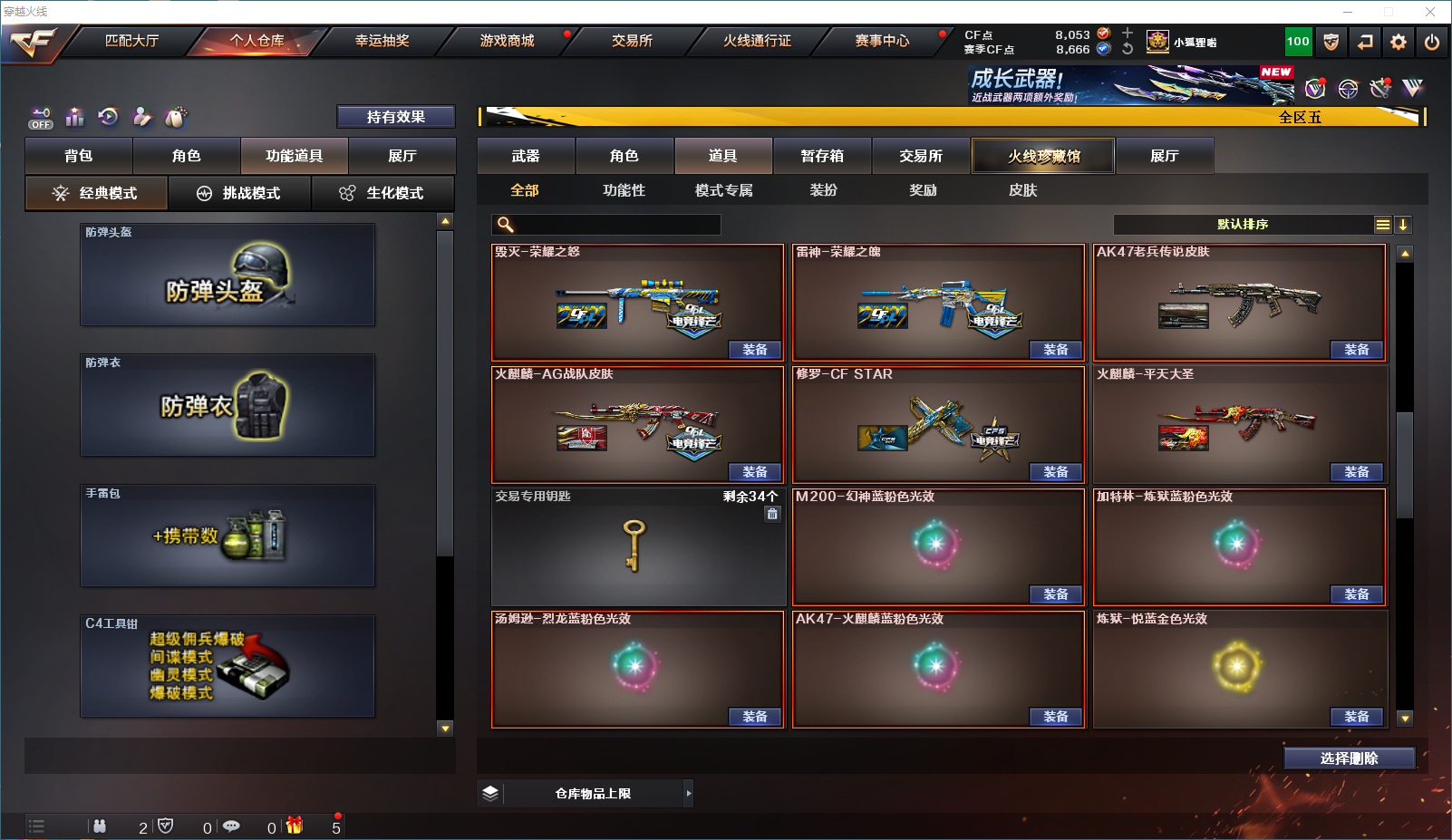 • 游戏区服:穿越火线 / 东部 / 江苏一区