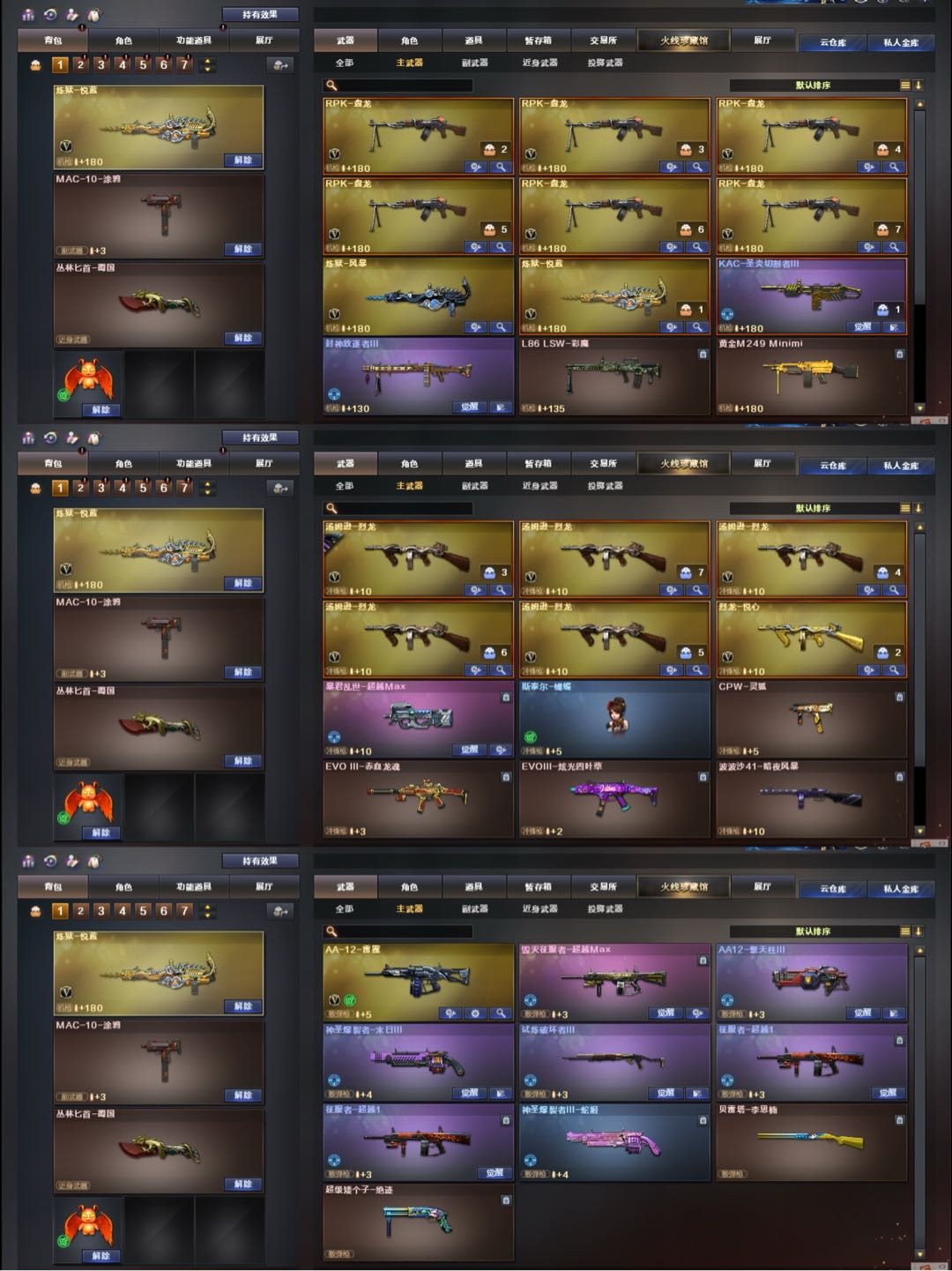生化背包无需换弹6烈6盘炼狱蝴蝶/6黑骑士/电玩白虎6副7刀/青龙毁灭火麒麟/挑战满配