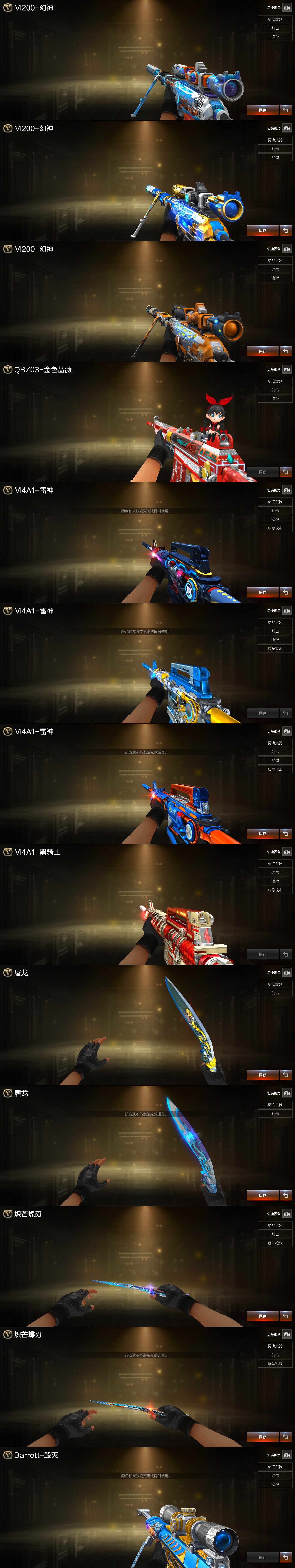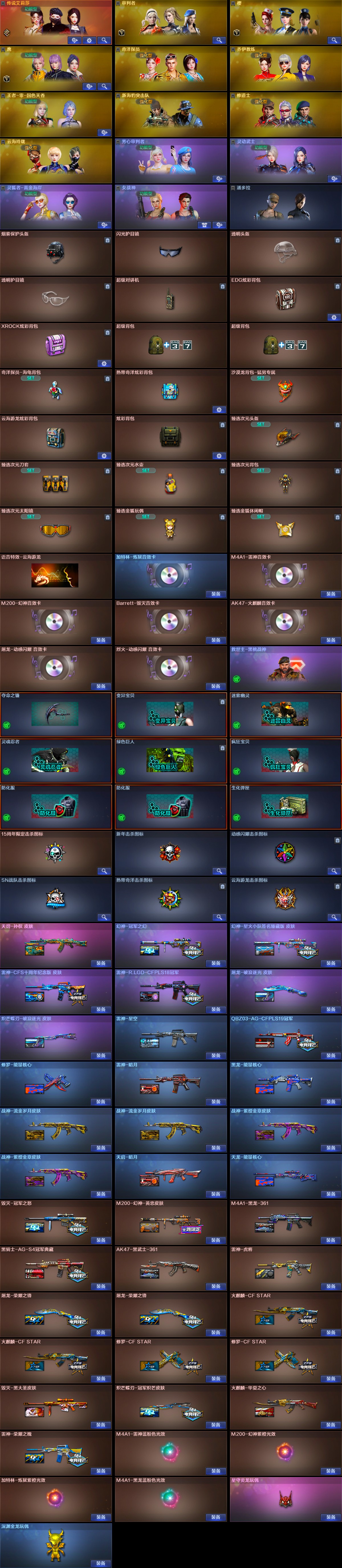 -【稀有武器】:M200-幻神/Kar98K-星神/VSK-94-金蚀/八面凌龙/G36C-幻影/QBZ03-天罚/USP-雷暴/COP357-幻灵(2)/USP-神工天巧(2)/天神-动感闪耀/荣耀世冠-柯尔特/柯尔特-冠军之特/QBZ03-金色蔷薇/AK47-火麒麟/M4A1-黑龙/M4A1-雷神/M4A1-黑骑士(3)/Barrett-毁灭(2)/Barrett-极光/AWM-裁决/RPK-盘龙(3)/加特林-炼狱/汤姆逊-烈龙(5)/炽芒蝶刃(2)/斩神刀-雷暴 【王者武器】:王者白虎-觉醒版/白虎之魄-觉醒版/王者之怒-觉醒版/王者之霆 【热门角色】:传说艾莉莎/鹰/奇洋探员/乔伊教练/新海豹突击队/潘多拉 【热门音效卡】:M200-幻神音效卡/加特林-炼狱音效卡/M4A1-雷神音效卡/Barrett-毁灭音效卡/AK47-火麒麟音效卡 【热门皮肤】:幻神-星火小队签名臻藏版皮肤/幻神-冠军之幻/天罚-孙权皮肤/雷神-R.LGD-CFPLS18冠军/屠龙-破浪逐光皮肤/炽芒蝶刃-破浪逐光皮肤/QBZ03-AG-CFPLS19冠军/毁灭-冠军之怒/黑骑士-AG-S4冠军典藏/屠龙-荣耀之锋(2)/炽芒蝶刃-冠军炽芒皮肤/雷神-荣耀之魄 【其他亮点】:斯泰尔-蝴蝶/Knife-冠军之刃/毒蜂/斯泰尔-枪娘暗刃/烟雾弹-荣耀世冠白鲨2023;USP-雷暴,荣耀世冠-柯尔特,柯尔特-冠军之特,炽芒蝶刃,Knife-冠军之刃,传说艾莉莎,RPK-盘龙,