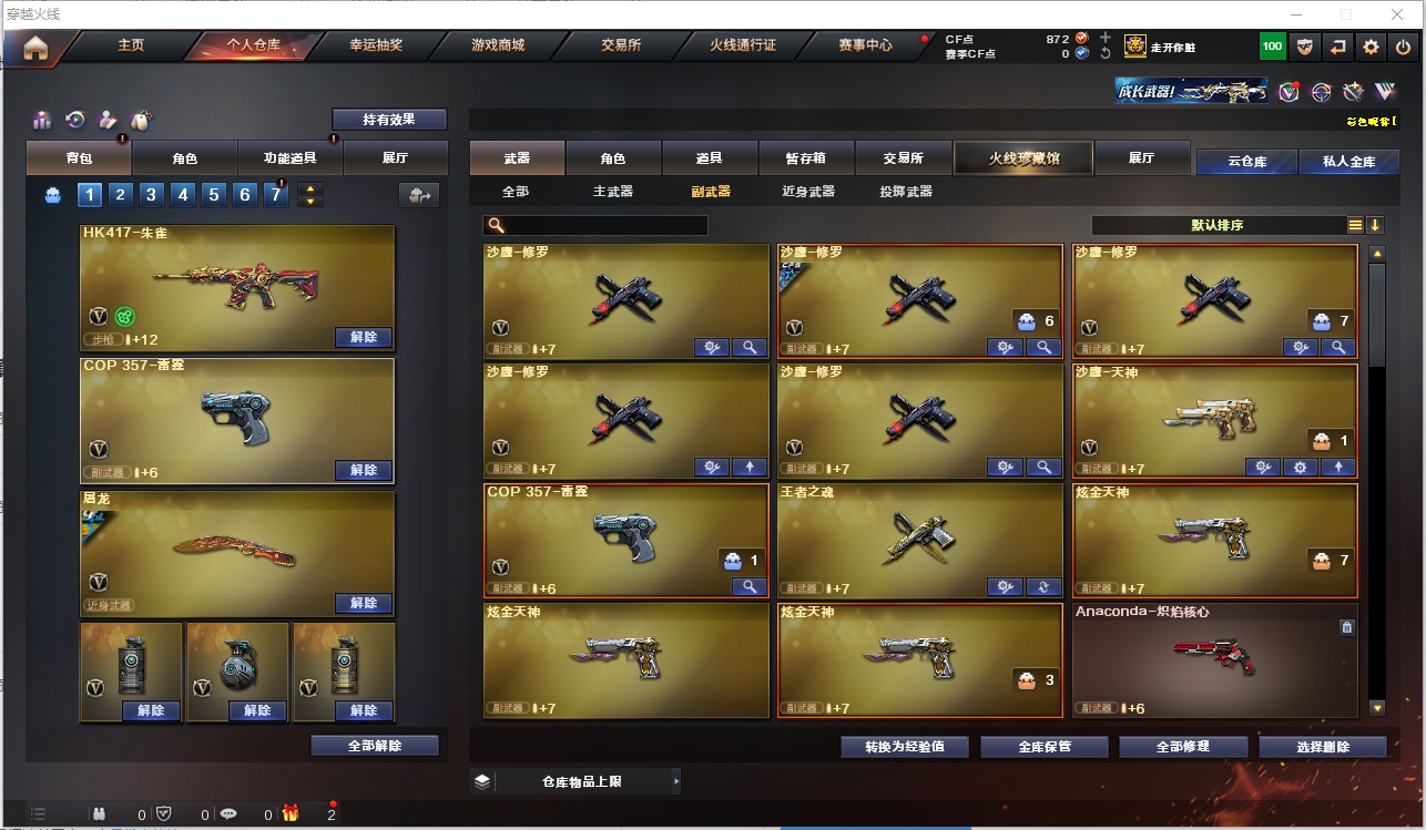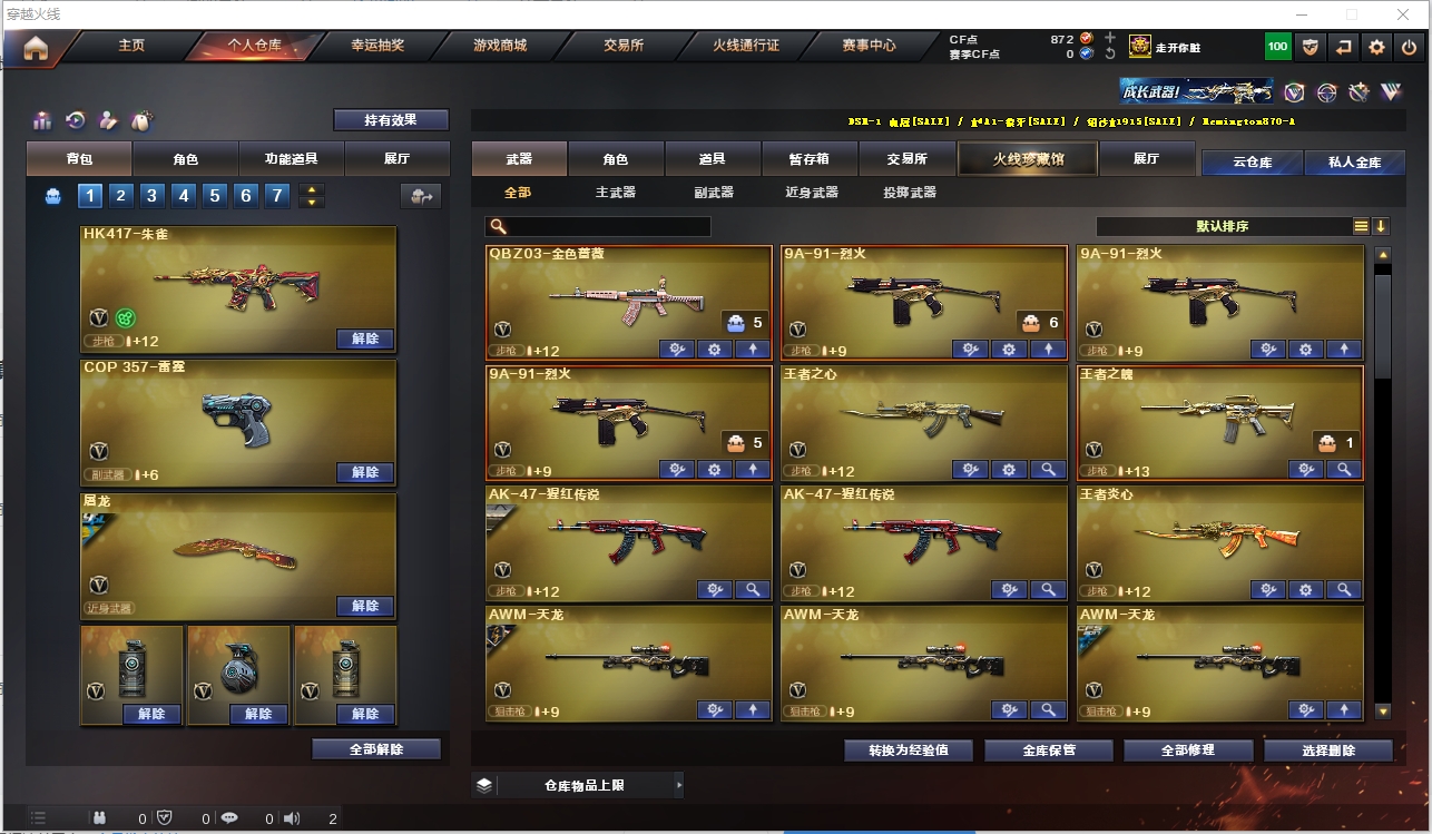 88V6王者6炫金可排位/M200幻神/HK417-朱雀/QBZ03-金色蔷薇/M4A1雷霆+COP357雷霆+尼泊尔雷霆+6套雷霆雷/5修罗/2炼狱6烈龙+死亡之眼/M4A1-雷神音效卡/AK47-火麒麟音效卡/Barrett-毁灭音效卡/M4A1-黑骑士音效卡/毁灭-CFS2018/火麒麟-CFS2018/修罗-CFS2018/雷神-荣耀之魄/毁灭-荣耀之怒/屠龙-荣耀之锋/AWM-天龙-传奇白鲨/AWM-天龙-传奇70KG/火麒麟-冠军之心/毁灭-冠军之怒/M4A1-雷神-CFS2019/火麒麟-CFSTAR/天龙-CFSTAR/激光毁灭者3/巨龙咆哮3/王者炎心觉醒/王者之心觉醒/王者之魄觉醒/王者之怒/王者之魂/炫金武士/炫金黑龙/炫金骑士/炫金天神/葵/炫/王者-瞳-闭月羞花/狐影/【长时效】烟雾保护头盔+闪光护目镜/炫彩背包/超级背包3-7+扩展背包/永久防弹衣+永久防弹头盔+永久C4工具钳+永久手雷包;QBZ03-金色蔷薇,M200-幻神,