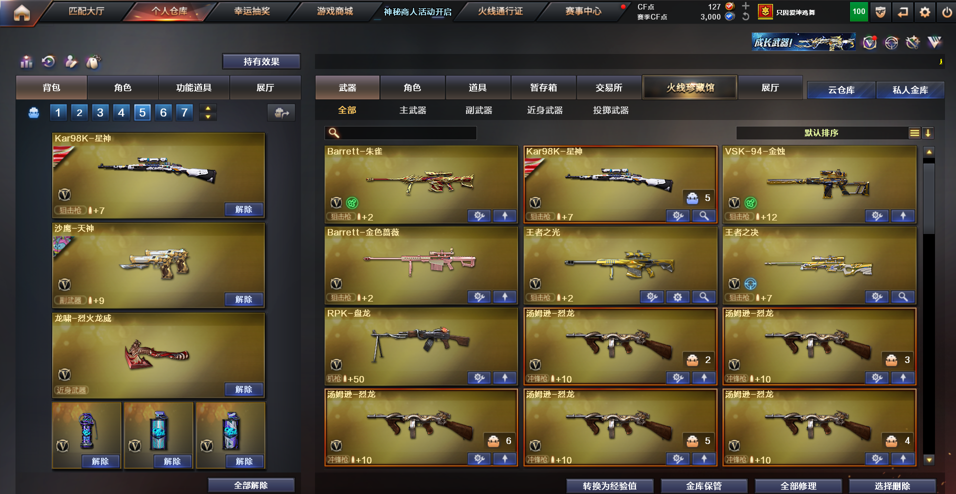 可排位|多v枪+传说女帝|玄豹/云龙/荣耀/神工/幻灵套|星神白虎|6烈蝴蝶|全源v武器|生化挑战