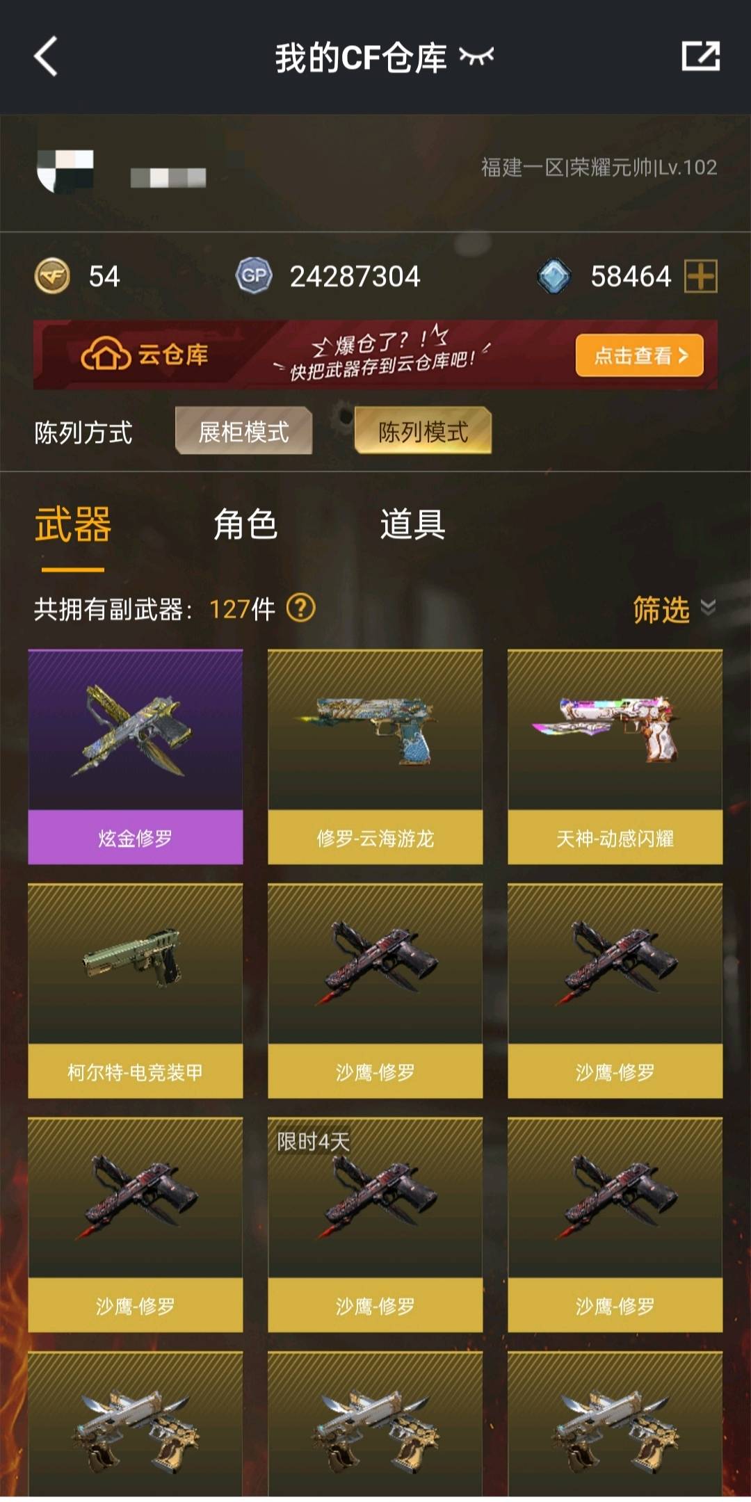 • 游戏区服:穿越火线 / 电信区 / 福建一区