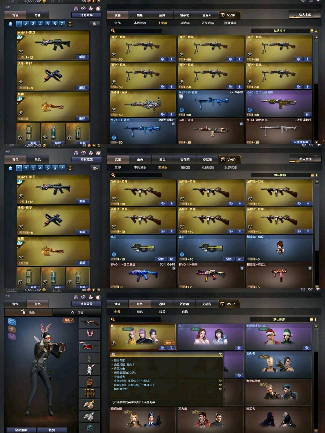 【遇到信用分不足时去旧版大厅进入普通频道,请勿使用科技和下载,感谢你么么哒】 【步枪系列】M4A1-雷神/黑龙/黑骑士/武圣/龙血/海王/能量核心/摸金校尉/AK47-火麒麟/传说辉光/黑鲨/朱雀/白虎 【狙击枪】AWM-天龙/Barrett-毁灭/极光/金色蔷薇 【辅助枪】RPK-盘龙*6 / 加特林炼狱/汤姆逊-烈龙*6/圣炎切割者III/乱世/激光毁灭者/迷你生化手雷/死亡之眼/ 斯太尔蝴蝶 / 六烈六盘 / 六盘六烈 / 6烈6盘 / 6盘6烈 /生化号 / 爆破号 / 【炫金王者】炫金骑士/炫金毁灭 【稀有角色】鹰【自定义3防】空【佣兵觉醒 无需换弹7秒/生化觉醒 狂暴化/捕食者之眼】 【副武器】沙鹰-修罗*6/柯尔特电竞装甲/COP-旗袍/MAC-涂鸦 【近身武器】麒麟刺 / 龙啸/ 屠龙 /擎天/黄金迷你深渊冰龙/黄金迷你裂空之翼/黄金虚空之锤/唐刀/手斧镜15 【投掷武器】竞技荣光套装*3/迷你生化手雷1/雄黄酒手雷 【通用道具】1-7背包 / 手枪弹匣 / 金蛇戒 / 狙击枪弹夹 / 魔龙戒 / 散弹枪弹夹 / 圣龙戒 / 挑战弹夹 / 银蛇戒 / 防弹头盔 / 烟雾保护头盔 / 防弹衣 / C4工具钳 / 手雷包 / 步枪弹匣 / 冲锋枪弹匣 / 机枪弹匣 / 闪光护目镜/超级护目镜/超级背包/透明头盔/透明护目镜/ 超级对讲机 /新彩色昵称/C4.红龙 【生化专属道具】生化弹夹/防化服/幽灵之刃/减少停顿道具(不退包)/灵魂忍者1/绿巨人/变异宝贝1/伪装幽灵/ 迷你生化手雷/ 肩膀佩戴超级对讲机(榴弹3/22) 【皮肤音效玩偶】【火麒麟盘古】【黑龙冠军之武】【雷神荣耀之魄/星空】【黑骑士冠军之势】【白虎电玩粉兔】【毁灭荣耀之怒】【擎天冠军之击】【龙啸冠军之啸】 兔子泰迪/中国娃/红色曼提柯尔/水下丽影/蝴蝶/天使灵狐/超能力少女/巨人/孙尚香/超能特工 【音效白虎音效卡-金色蔷薇音效卡-黑骑士音效卡】 【4大战区】北部战区;RPK-盘龙,QBZ03-金色蔷薇,Scar Light-白虎,