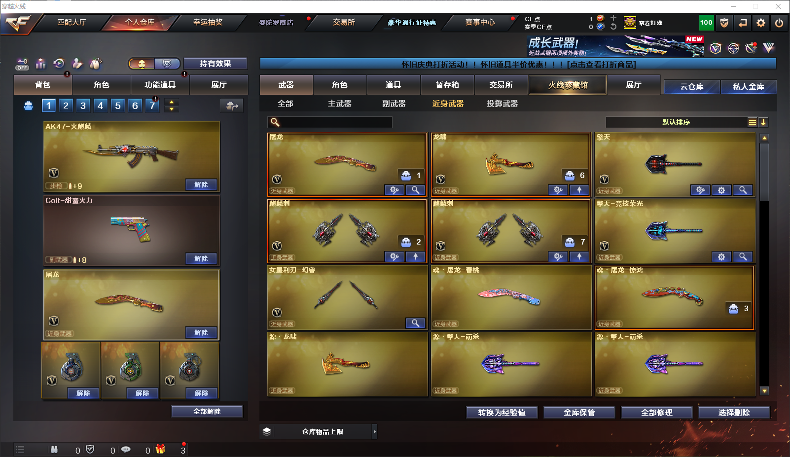 首页 > 租号大厅 > 穿越火线 > 电信区/四川一区 > 65V竞技荣光星神幻兽6烈龙蝴蝶人物火麒麟雷神6黑骑士毁灭极光破空枪刃
