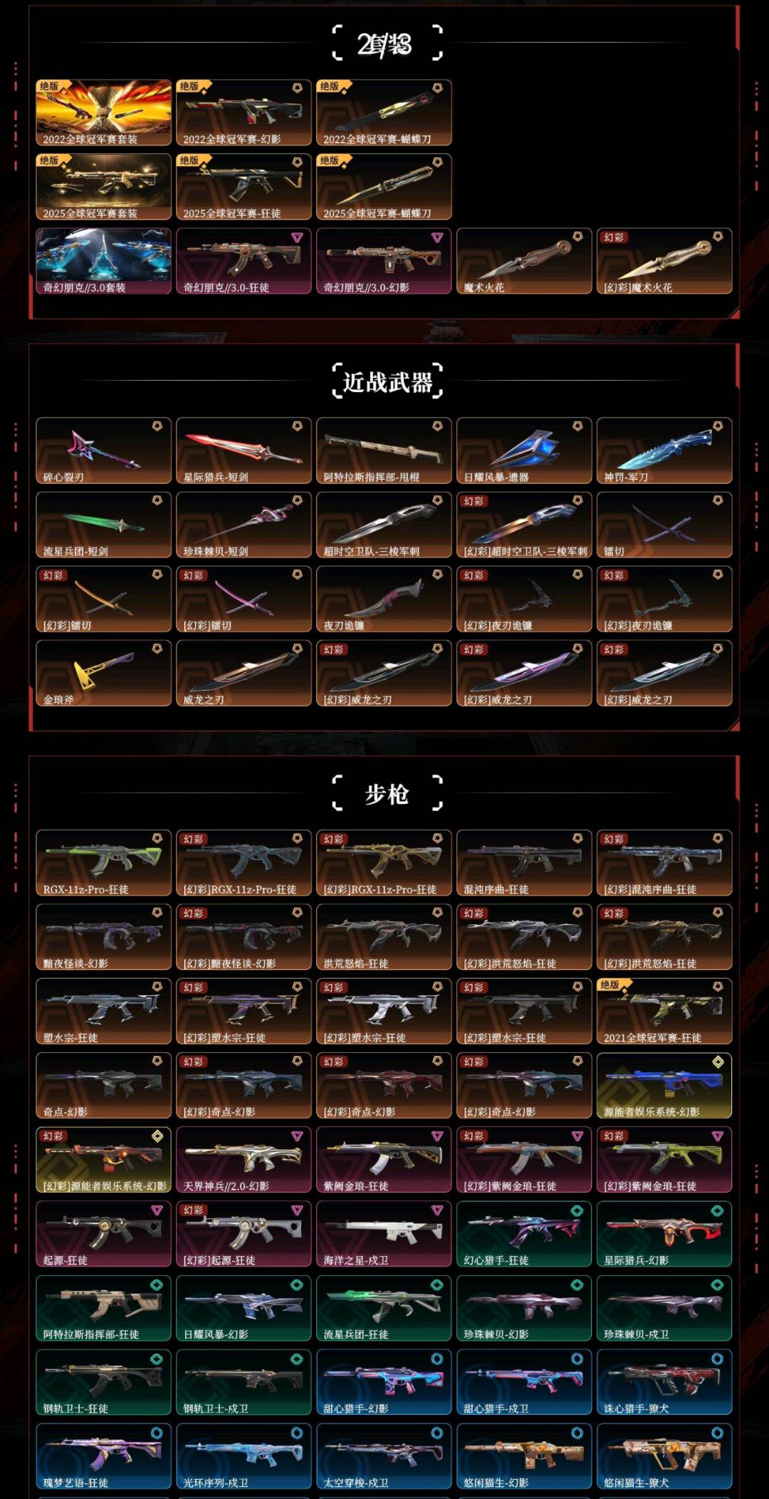 三棱军刺✨22🏆25冠军套🏆21冠军狂徒✨电工套✨混沌显卡流脓狂徒✨天界鬼魅✨奇点战神