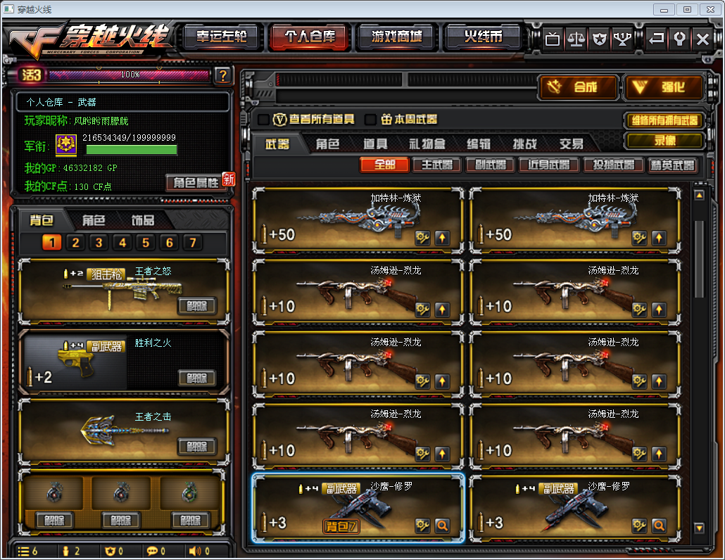 【133V】烈龙X6--6盘龙+炼狱-竞技荣光套、8把王者武器--95幻兽套装--幻兽-手雷套X5