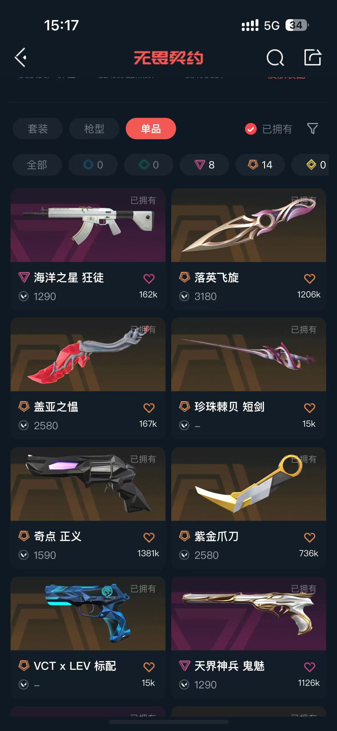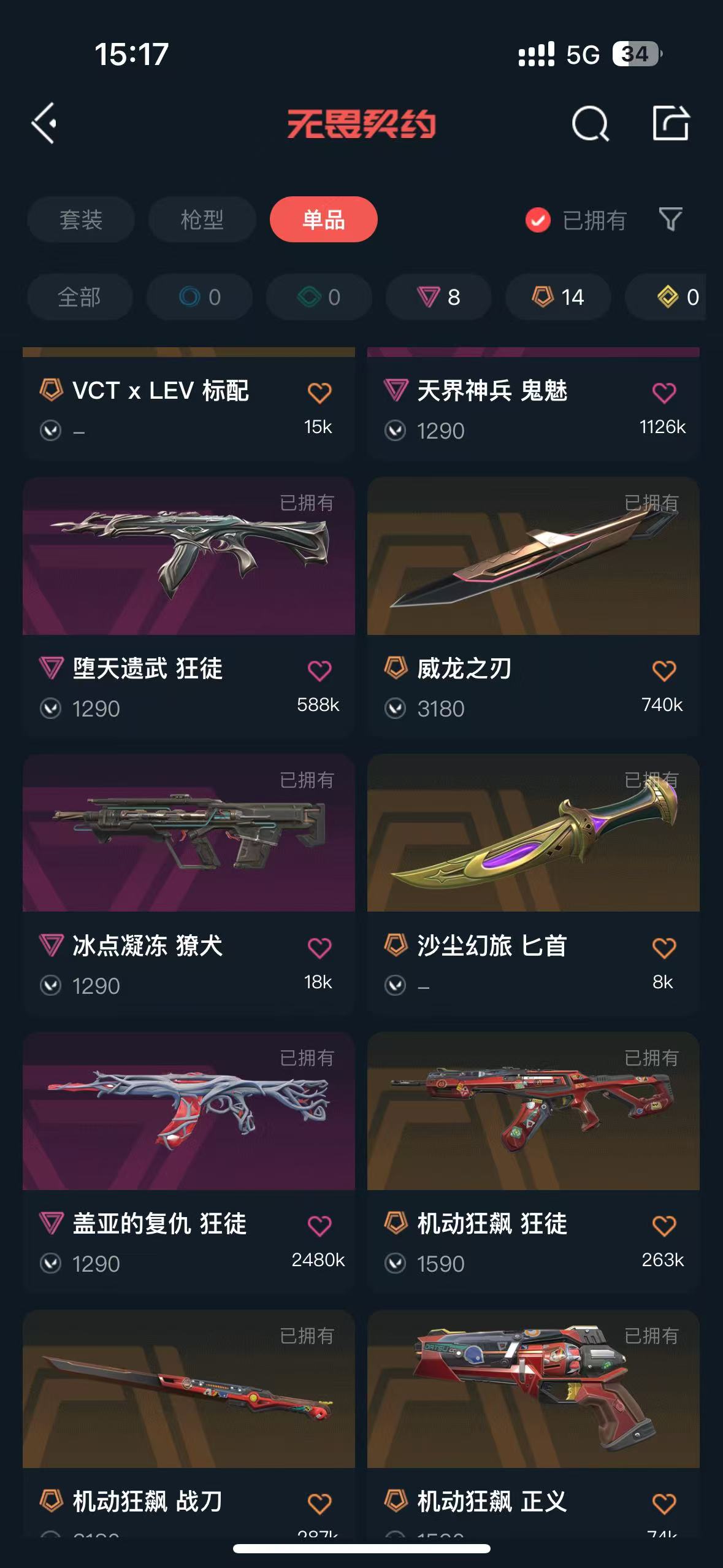 首页 > 租号大厅 > 无畏契约-wegame > wegame/wegame > 可排位✨紫金爪刀✨威龙之刃✨盖亚刀✨盖亚狂徒✨机动狂飙套✨侦查幻影✨奇点正义