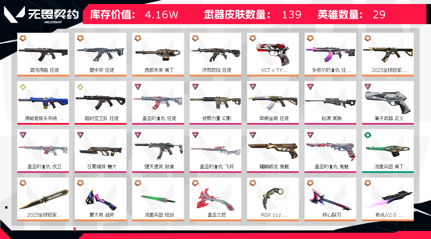 • 皮肤资产价值: 41620