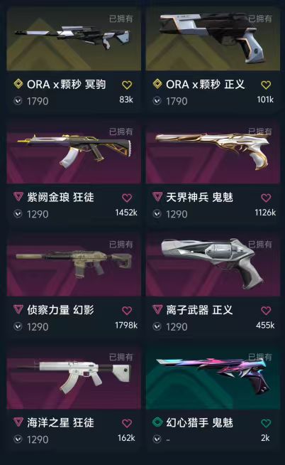 冻结秒解✨可排✨ORA颗秒套✨25冠军套✨侦察力量幻影✨离子武器正义✨天界神兵鬼魅✨紫阙金琅狂徒