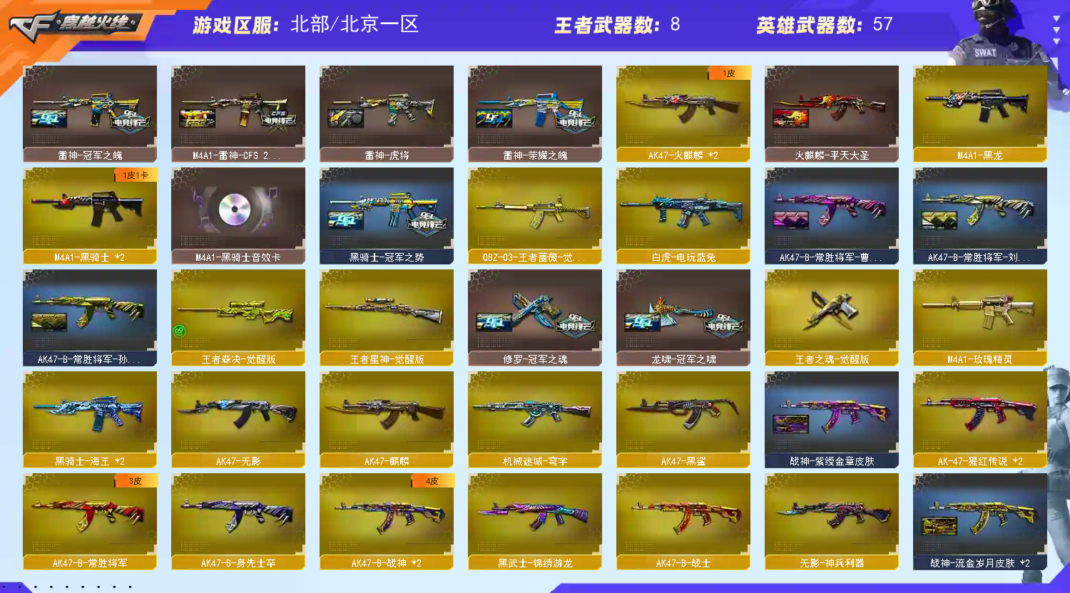 • 游戏区服:穿越火线 / 北部 / 北京一区