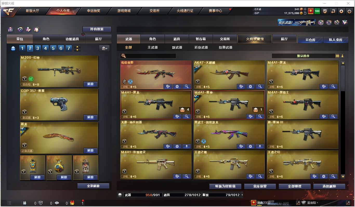 传说夜影|M200幻神|98k星神|幻神竞技荣光|王者风神|白虎之魄|COP雷霆|爆破全装号 【编号】:SD357 【角 色】:云悠悠、暗夜审判、风暴女、救世主-X、蜀雪、铁骑荣耀、影舞者-X、8周年戒指、双蛇戒指、双龙戒指 【主 武】:传说夜影、幻神、星神、幻神竞技荣光X2、王者风神、白虎电玩蓝兔、白虎之魄、火麒麟(STAR)、黑龙X2、雷神(荣耀之魄)、黑骑士、黑骑士海王、毁灭、极光、Barrett金色蔷薇、Barrett暗月传说、AA12雷霆、毁灭征服者、冰龙粉碎者、机甲撕裂者、激光毁灭者、圣炎切割者、深渊巨龙咆哮、神圣爆裂者、试炼破坏者、苍雷、金魔等各种活动武器 【副 武】:COP雷霆、柯尔特竞技荣光、修罗、天神、阐释者、COP小青龙、胜利之火、大黄蜂 【近 身】:屠龙(荣耀之锋)、龙啸、擎天、幻灵之锋、擎天竞技荣光、丛林匕首-枪王排位、猫猫手套、激光短刃、冰火魔拳 【投 掷】:幻灵套装X2、竞技荣光套装X2、迷你生化手雷、深渊终结者手雷、胜利之光、高爆手雷-雷蛇、高爆手雷-SS 【道 具】:超能少女玩偶、天使灵狐玩偶、蝴蝶玩偶、枪娘公爵玩偶、7个背包、AC(防弹衣+防弹头盔)、C4工具钳、手雷包、挑战弹夹、夺命之镰、变异宝贝、灵魂忍者、生化弹夹、防化服、机枪弹夹、冲锋枪弹夹、散弹枪弹夹、手枪弹夹、狙击枪弹夹、步枪弹夹、减少停顿包;电竞教官-云悠悠,M200-幻神,Kar98K-星神,