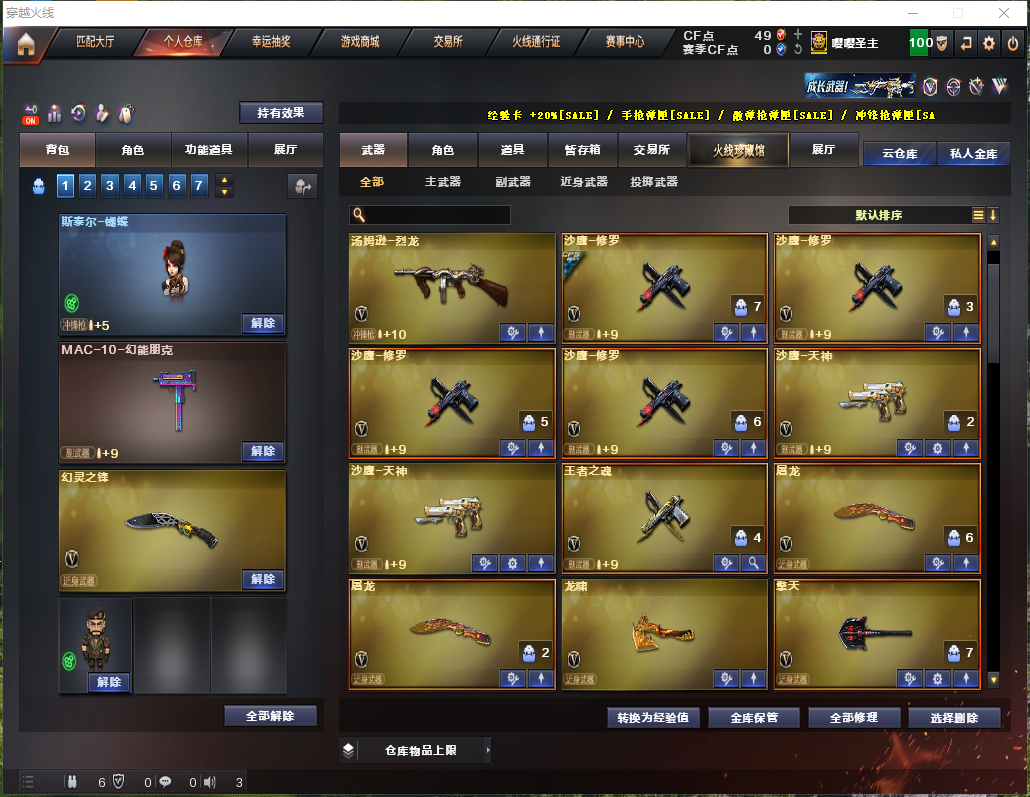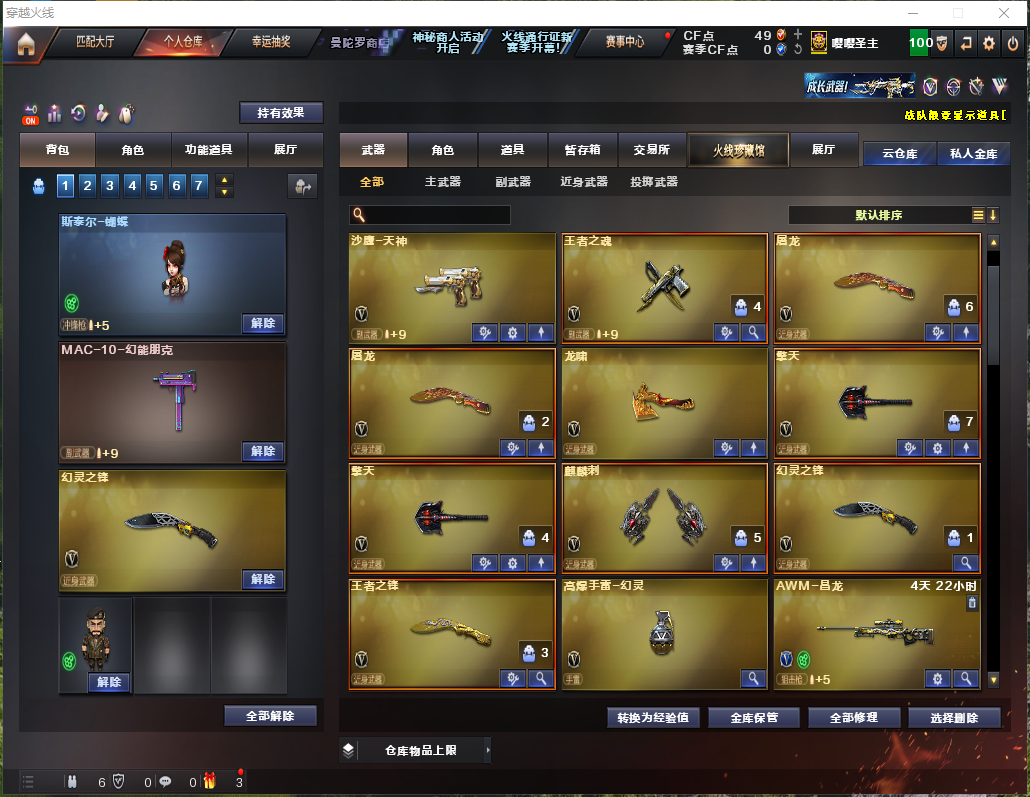 首页 > 租号大厅 > 穿越火线 > 电信区/广东一区 > 60V/传说光耀传说暗裔/白虎/蝴蝶⑤炼狱⑥烈⑥盘/高爆幻灵/蔷薇裁决雷神/⑦手枪/金色蔷薇-空/