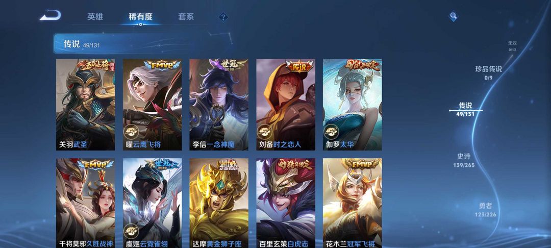 上不去看最后一张图贵族10,695皮伽罗典藏124传说,7无双,7珍品,群星魔术团,落雪白狼,龙年全满,曦炫引,战鼓燎原时之奇旅,隐龙天啸,妄想实况,琥珀纪元