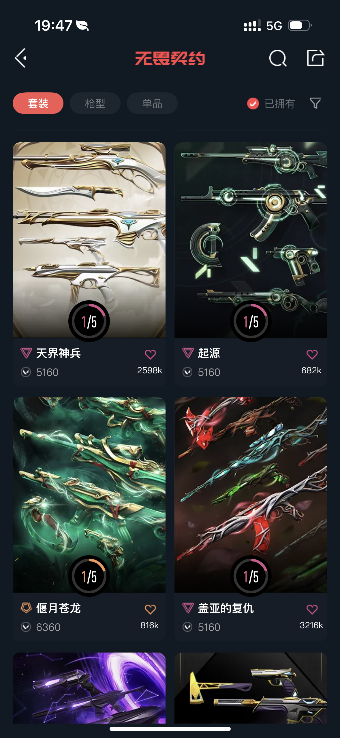 允许 英雄28 武器皮肤数量192;艾沃莉的梦之翼 奥丁,黑波之刃,镭切,威龙之刃,VCT 2025 爪刀,盖亚的复仇 狂徒,虚空遗器 狂徒,