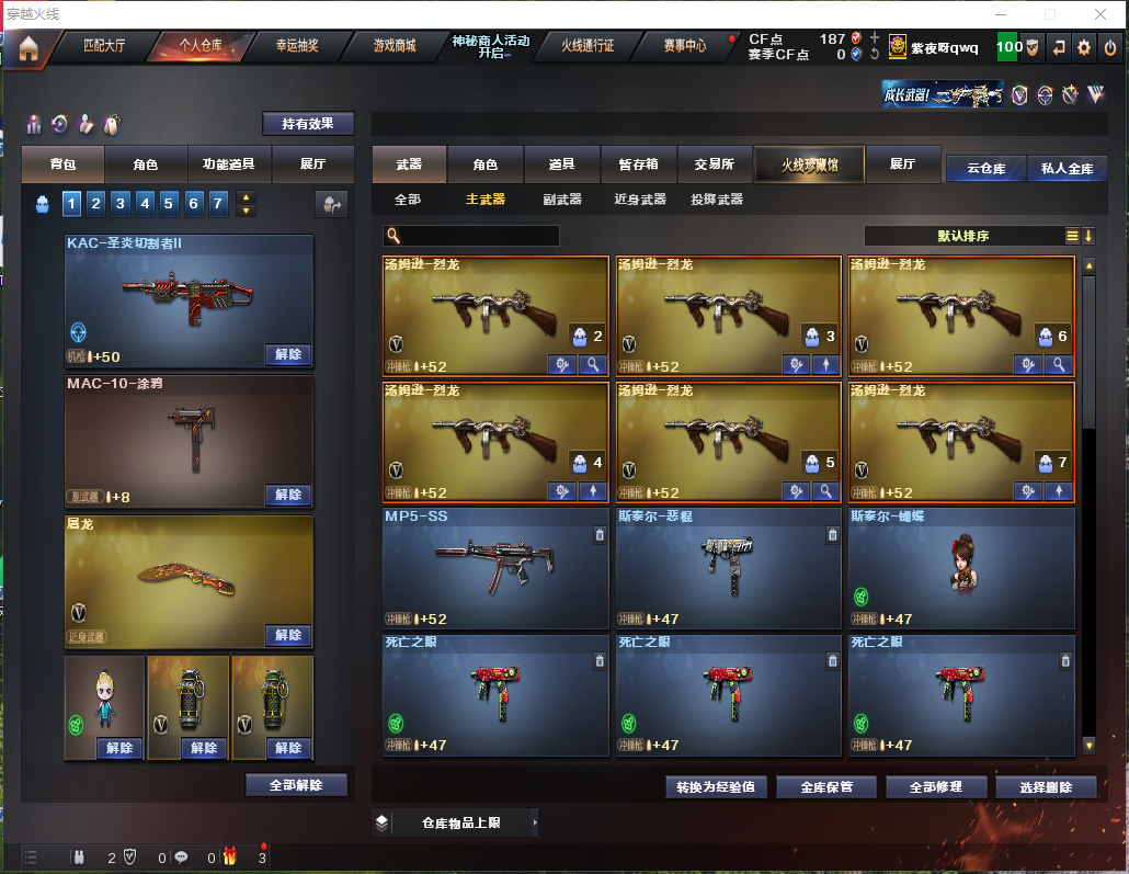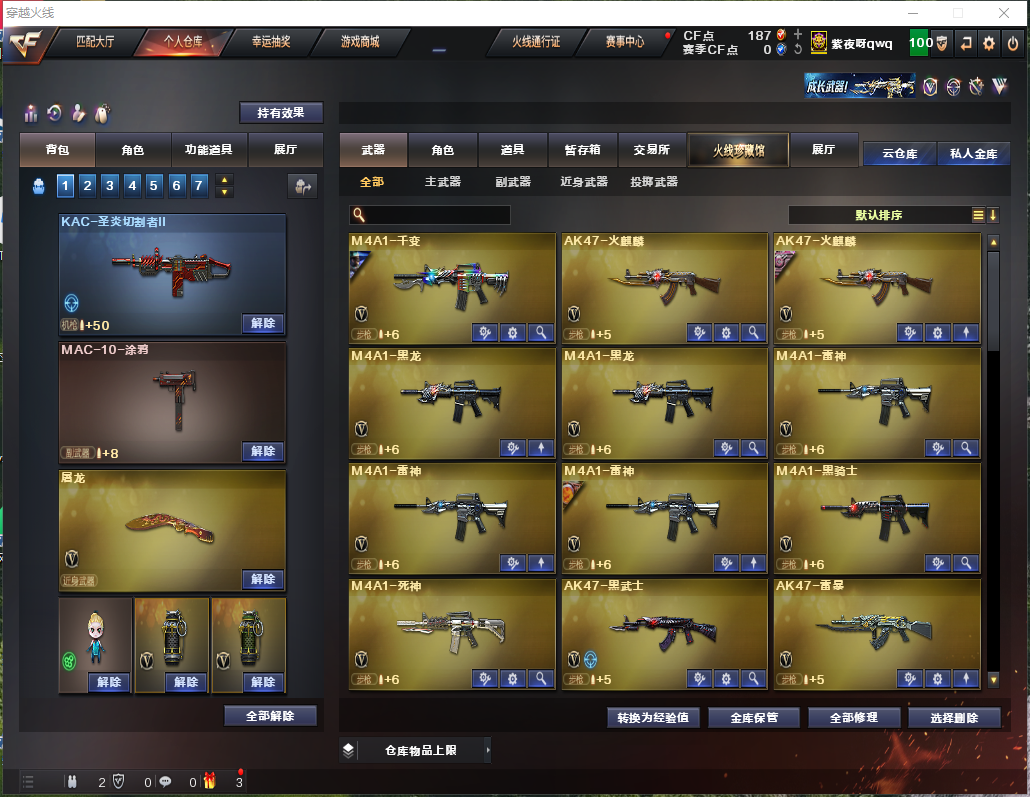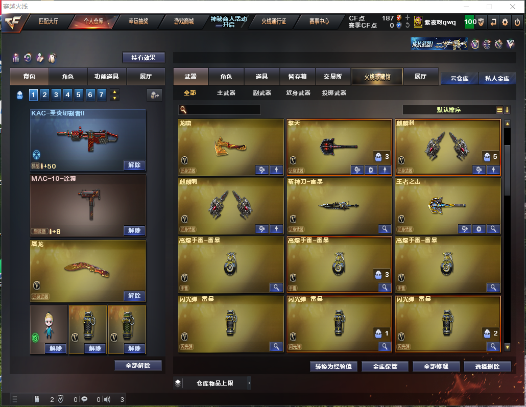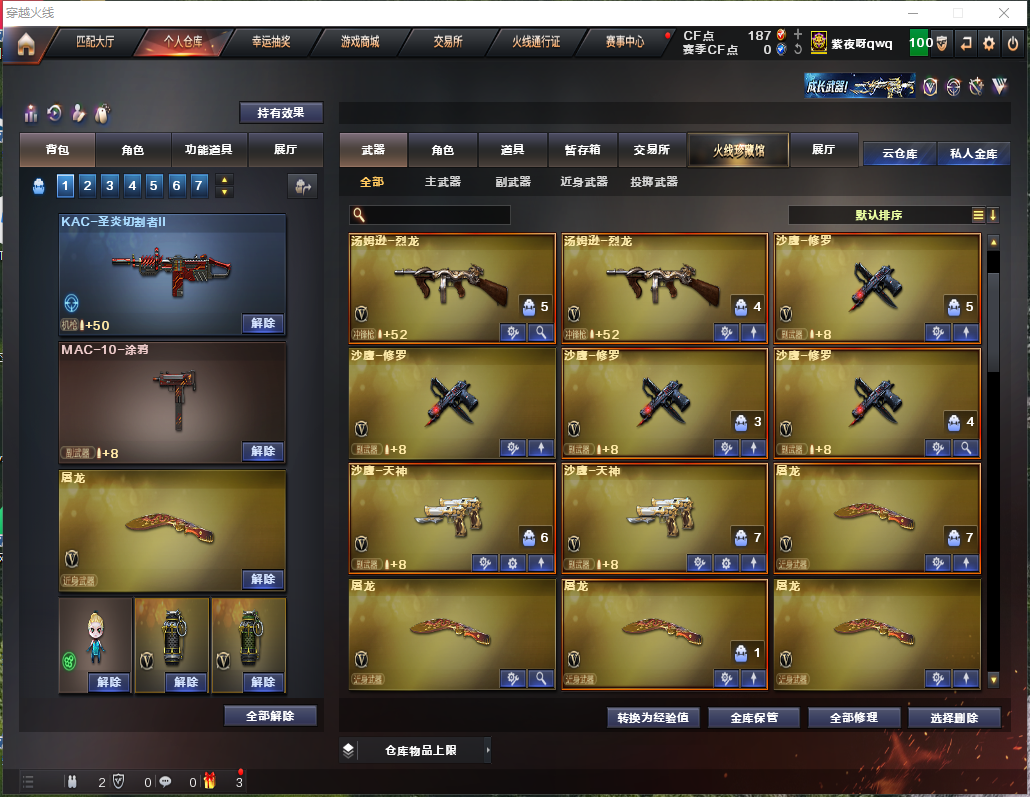 首页 > 租号大厅 > 穿越火线 > 电信区/广西一区 > 62V/蝴蝶炼狱⑥烈龙/AK雷暴/⑥手枪/变异宝贝/VIP6/毁灭/雷神/王者之击觉醒/生化爆破全装