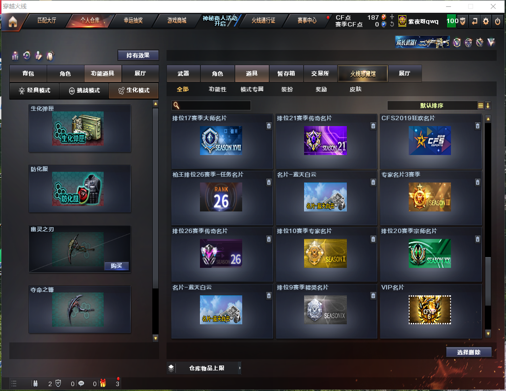 60V-4王者-斯太尔蝴蝶-6烈龙-紫霞+无需换弹+捕食者之眼-对讲机-王者之幻-炫金黑龙-王者之击-王者玫瑰-火麒麟STAR-天龙STAR-千变-火麒麟-2黑龙-3雷神-黑骑士-死神-黑武士-AK雷暴-玫瑰精灵-4猩红传说-天龙-毁灭-3极光-裁决-盘龙-炼狱-4修罗-2天神-5屠龙-3龙啸-擎天-2麒麟刺-战神刀雷暴-零水下丽影-紫霞-灵狐者黄金海岸-夜玫瑰X-曼陀罗X-死亡之眼-A180蓝色骑士-巧克力斯太尔-涂鸦手枪-黄金丛林匕首-手斧镜-大元帅-全背包-vip3-变异宝贝-妖姬-疯狂宝贝-灵魂忍者/灵狐者-步枪-冲锋枪-机枪-狙击枪-生化弹夹-勇往直前包-生化爆破全装 生化荣誉等级:满级 禁止外挂,文明游戏,谢谢合作!(疫情已经够难了,切莫作怪) 谢谢老板,感激不尽,祝老板好运一生;RPK-盘龙,