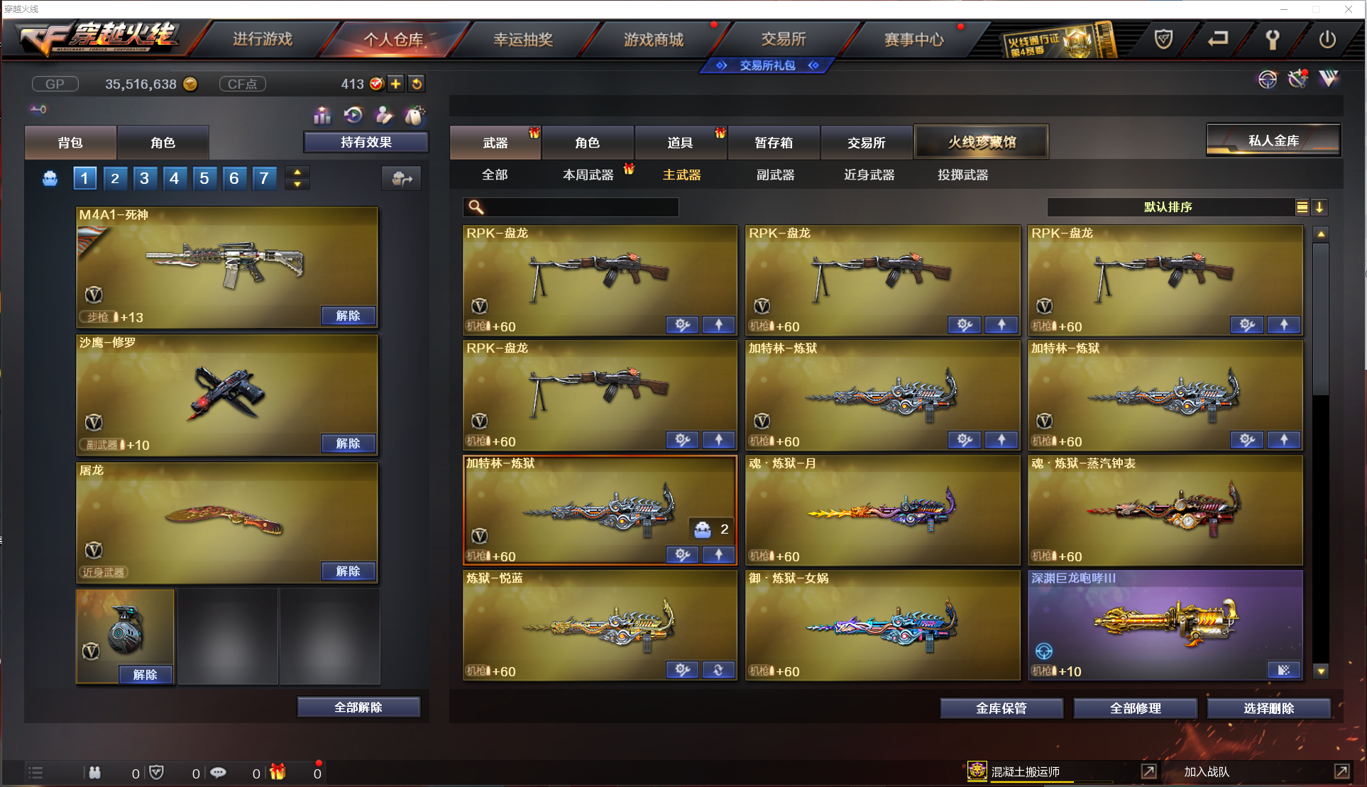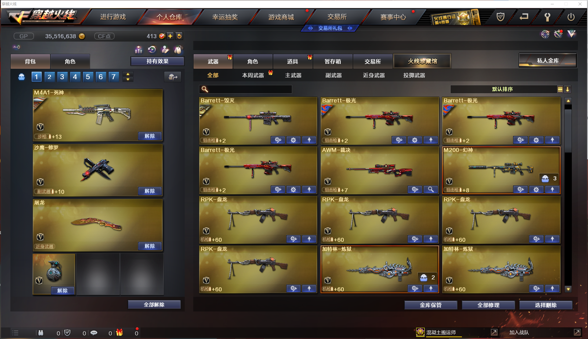 M200幻神|6烈龙死亡之眼|4盘龙加特林炼狱|87V王者零华冠丽服|炫金天龙|生化爆破全装号